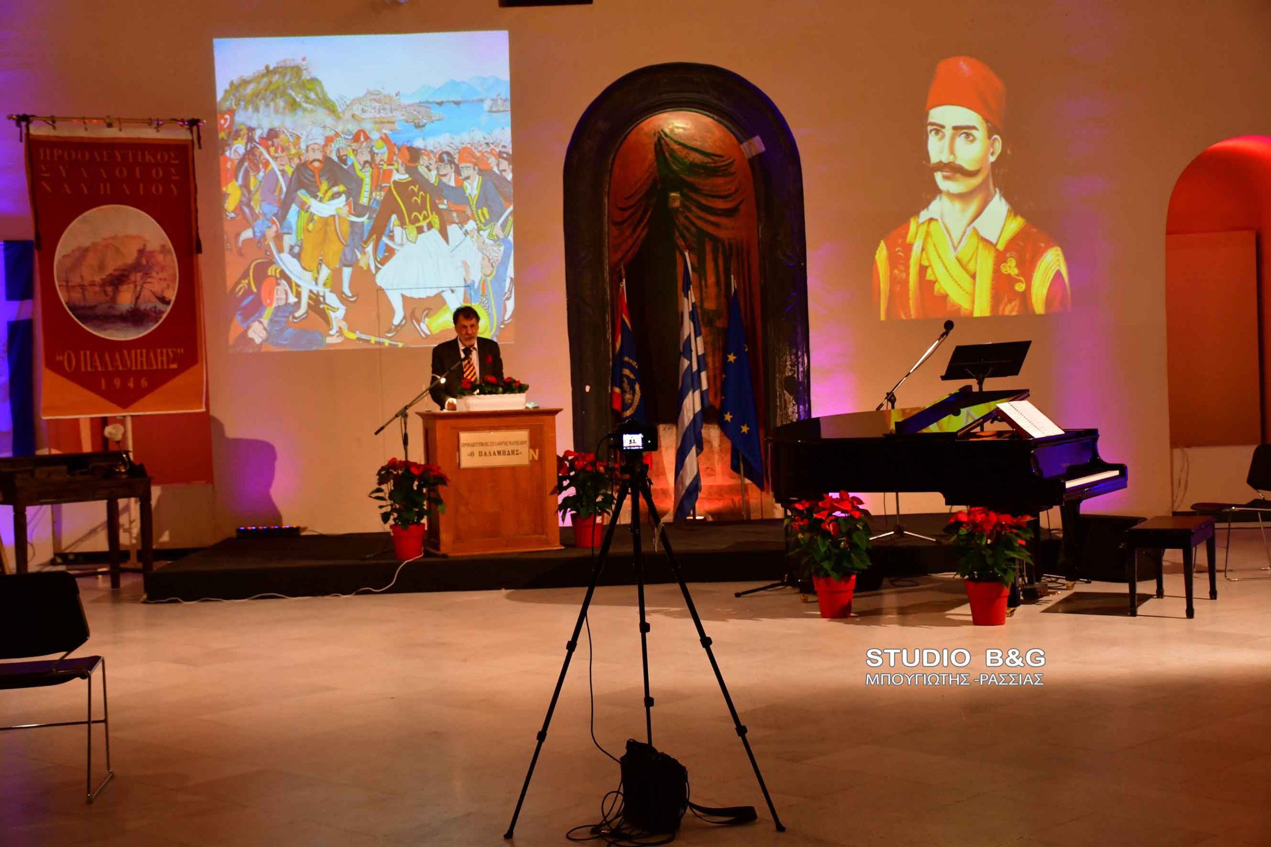 Η εκδήλωση βιντεοσκοπήθηκε στις 27 Νοεμβρίου λόγω των μέτρων για την πανδημία στο βουλευτικό και προβάλλεται σήμερα. Χαιρετισμούς απεύθηναν ο Δήμαρχος Ναυπλιέων Δημήτριος Κωστούρος, και ο Πρόεδρος του Συλλόγου των Απανταχού Ναυπλιέων Κωνσταντίνος Κολόκας. Το χρονικό της απελευθέρωσης θα εκφώνησε ο Πρόεδρος του Προοδευτικού Συλλόγου Ναυπλίου ΄΄Ο ΠΑΛΑΜΗΔΗΣ΄΄.