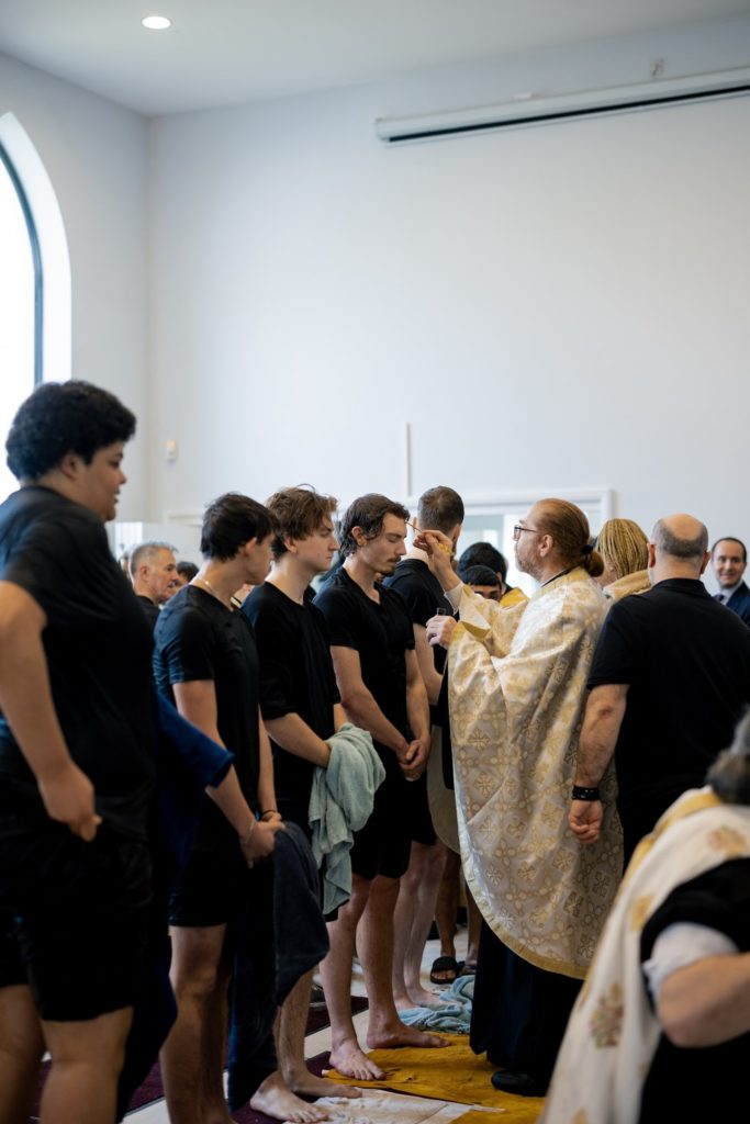Μετά το πέρας του μυστηρίου, οι νεοφώτιστοι εισήλθαν στον κυρίως ναό κρατώντας αναμμένες λαμπάδες και συμμετείχαν στην Πανηγυρική Θεία Λειτουργία, κοινωνώντας για πρώτη φορά των Αχράντων Μυστηρίων.
