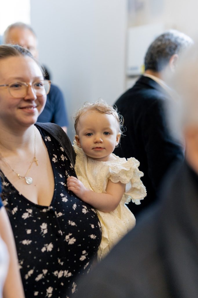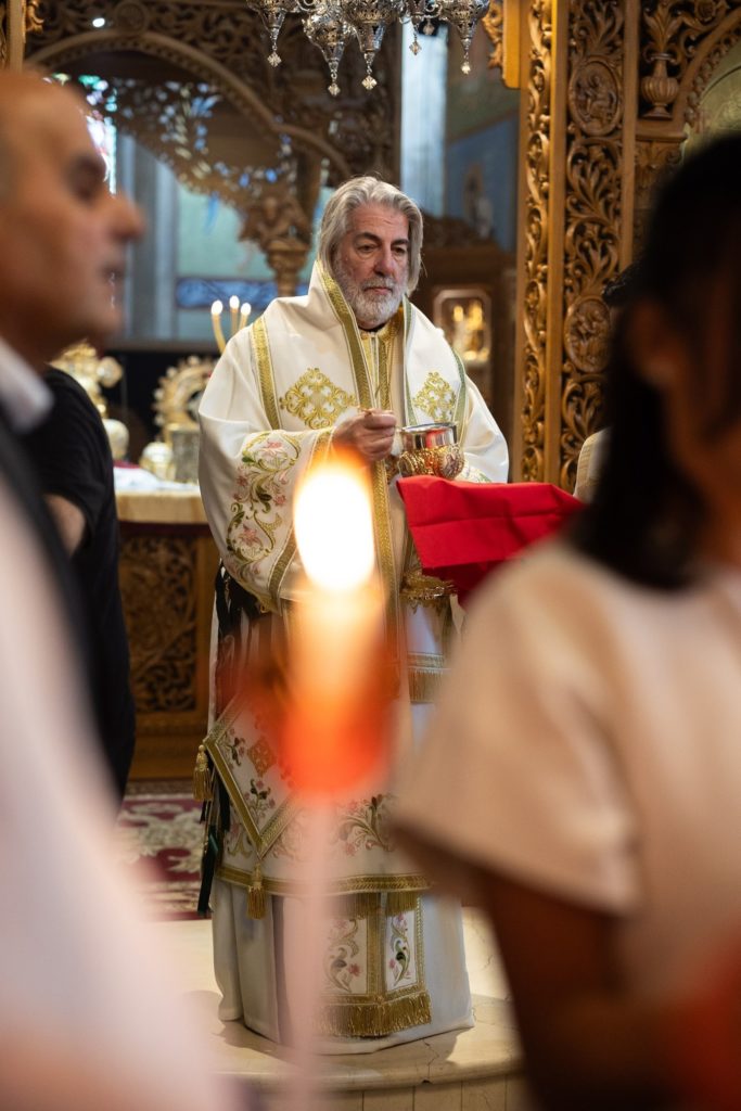 Μετά το πέρας του μυστηρίου, οι νεοφώτιστοι εισήλθαν στον κυρίως ναό κρατώντας αναμμένες λαμπάδες και συμμετείχαν στην Πανηγυρική Θεία Λειτουργία, κοινωνώντας για πρώτη φορά των Αχράντων Μυστηρίων.
