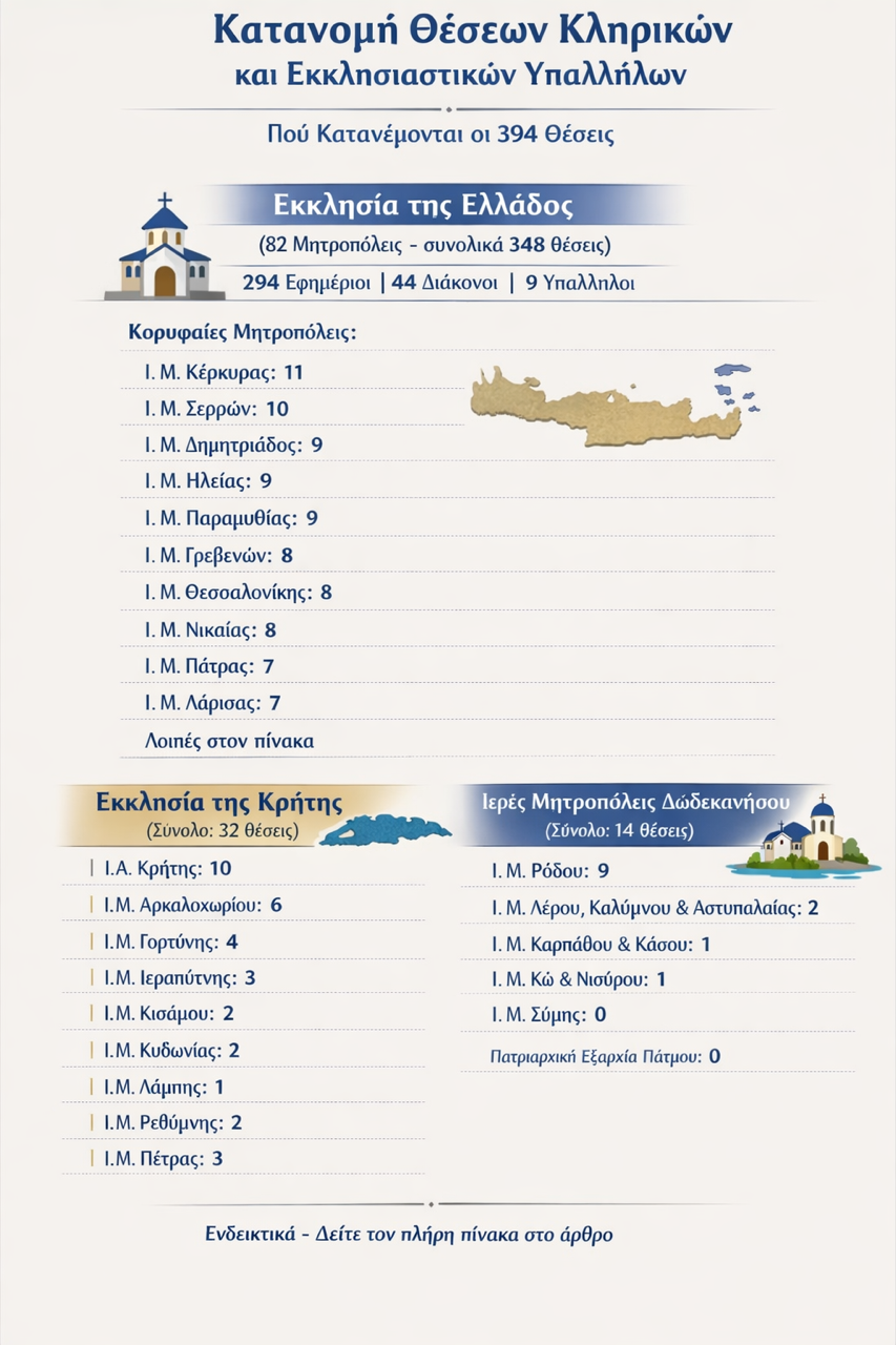 • Εκκλησία της Κρήτης: προβλέπεται μικρότερο αλλά ουσιαστικό «πακέτο» ενισχύσεων, με συγκεκριμένες θέσεις σε Ιερά Αρχιεπισκοπή και Μητροπόλεις.