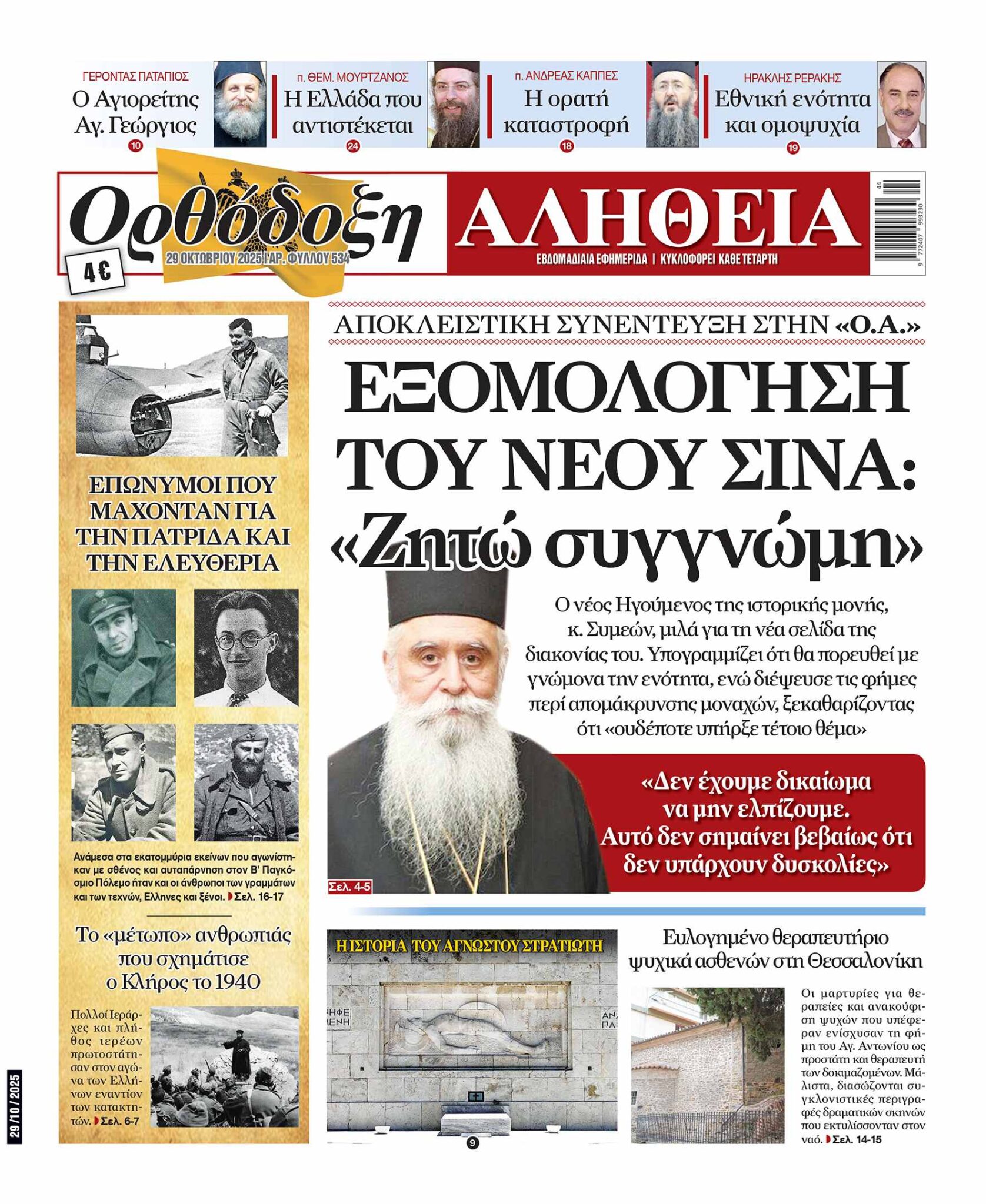 Αυτή την Τετάρτη η “Ορθόδοξη Αλήθεια” κυκλοφορεί με ισχυρό διπλό στίγμα: ένα κορυφαίο εκκλησιαστικό ντοκουμέντο και μια συνέντευξη που ήδη συζητείται.