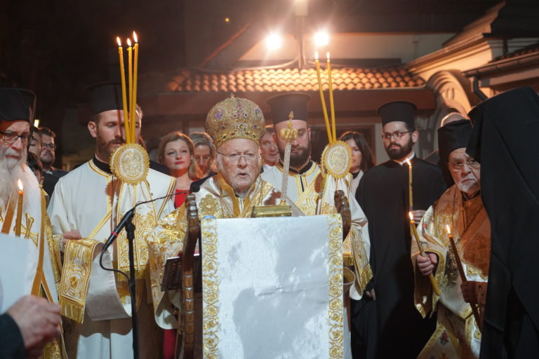 Στον αυλόγυρο του Οικουμενικού Πατριαρχείου, υπό το φως των λαμπάδων και με τη συμμετοχή κληρικών και πιστών από όλο τον κόσμο, ο Οικουμενικός Πατριάρχης κ.κ. Βαρθολομαίος προεξήρχε της τελετής της Αναστάσεως τα μεσάνυχτα του Μεγάλου Σαββάτου, μεταφέροντας το διαχρονικό μήνυμα της νίκης της ζωής επί του θανάτου.