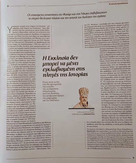 • Χαλκηδόνος Εμμανουήλ: «Η επίσκεψη του Πάπα στο Φανάρι σηματοδοτεί νέα εποχή» – Πορεία προς Νίκαια 2025 και ιστορικός διάλογος ενότητας