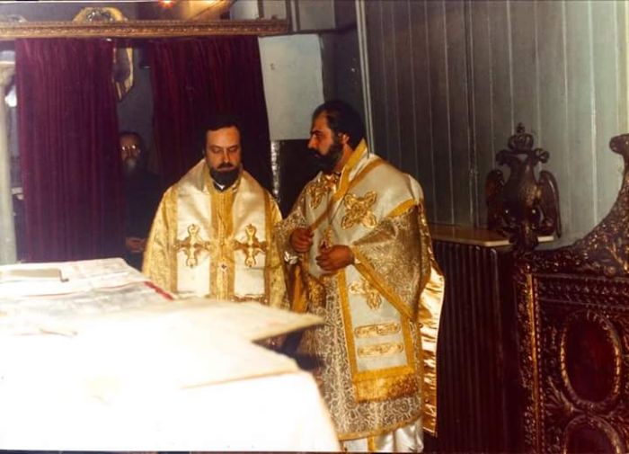 Ο Γέρων Νικομηδείας, τότε Μελιτινής με τον νεοχειροτονηθέντα Επίσκοπο Μιλήτου Απόστολο ενώ στο βάθος διακρίνεται ο μακαριστός Πατριάρχης Κυρός Δημήτριος