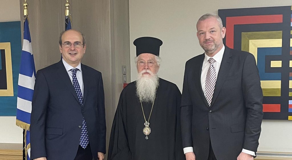 Ο Σεβασμιώτατος Μητροπολίτης Λαοδικείας κ. Θεοδώρητος, Διευθυντής του Γραφείου Εκπροσωπήσεως του Οικουμενικού μας Πατριαρχείου στην Αθήνα, επισκέφθηκε τον Υπουργό Εργασίας & Κοινωνικών Υποθέσεων Κωστή Χατζηδάκη και συζήτησε μαζί του θέματα του Οικουμενικού μας Πατριαρχείου της Μητρός Εκκλησίας και της Ομογένειας της Πόλης.