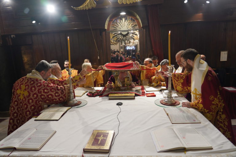 Στη Θεία Λειτουργία συλλειτούργησαν οι Σεβασμιώτατοι Μητροπολίτες Φιλαδελφείας, Μυριοφύτου και Περιστάσεως, Μύρων, Ικονίου, Προύσης, Σελευκείας και Αγκύρας, ενώ συμμετείχε και ο Ηγούμενος της Ιεράς Μονής Αγίου Ιωάννου του Προδρόμου Έσσεξ. Η παρουσία τόσων Αρχιερέων κατέδειξε τη συνοδικότητα και τη ζωντανή ενότητα της Μητρός Εκκλησίας, σε μια περίοδο κατά την οποία ο λόγος της Εκκλησίας καλείται να σταθεί με διάκριση και ευθύνη μέσα σε έναν κόσμο γεμάτο εντάσεις.