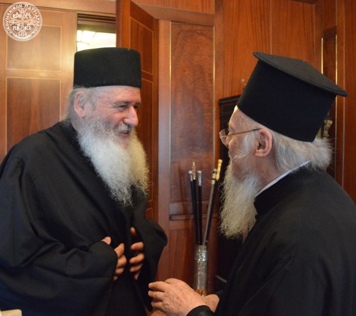 Ακολούθως ο Παναγιώτατος δέχθηκε τον Ηγούμενο της Αγιορείτικης Μονής Ιβήρων Αρχιμ. Ναθαναήλ και τον προηγούμενο της ίδιας Μονής, Αρχιμ. Βασίλειο.