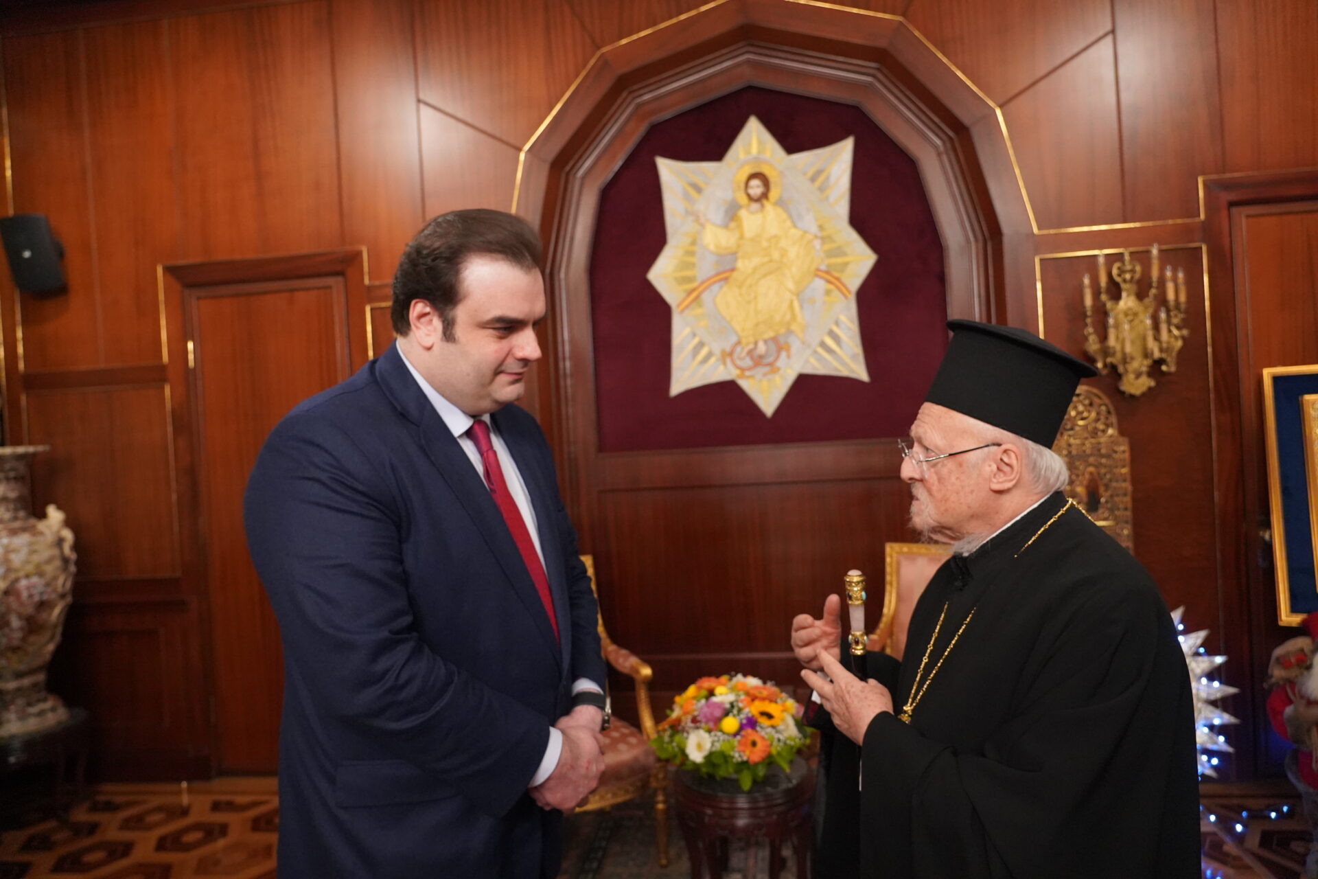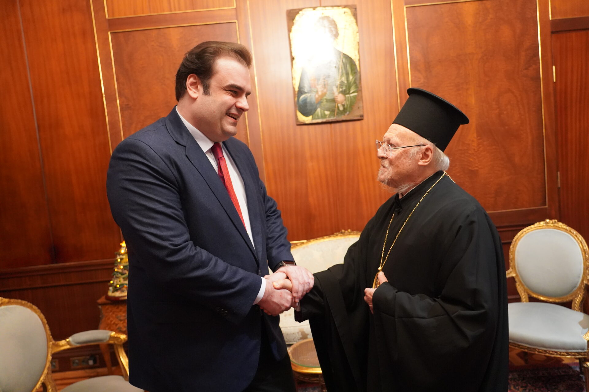 Οικουμενικός Πατριάρχης: Ο Βαρθολομαίος απηύθυνε θερμά συγχαρητήρια και πατρικές ευχές προς τον νέο Πρόεδρο του Eurogroup και Υπουργό Εθνικής Οικονομίας και Οικονομικών της Ελλάδος, Κυριάκος Πιερρακάκης, κατά την επίσκεψή του στην Έδρα του Οικουμενικό Πατριαρχείο στο Φανάρι, την παραμονή των Θεοφανείων, το απόγευμα της 5ης Ιανουαρίου 2026.
