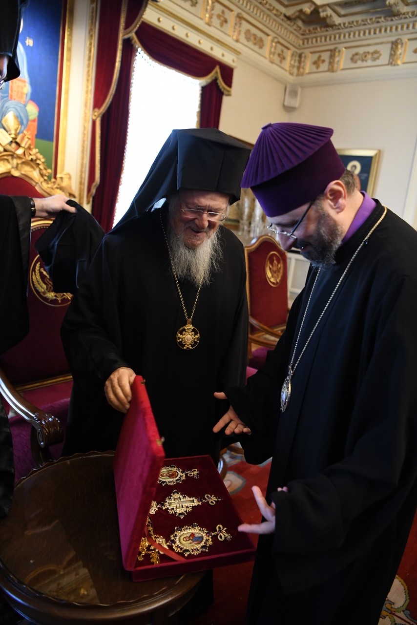ο Παναγιώτατος Οικουμενικός Πατριάρχης Βαρθολομαίος προκειμένου να συγχαρεί προσωπικώς τον νεοεκλεγέντα Αρμένιο Πατριάρχη στην Τουρκία Sahak Maşalyan, ο οποίος εξελέγη την περασμένη εβδομάδα.