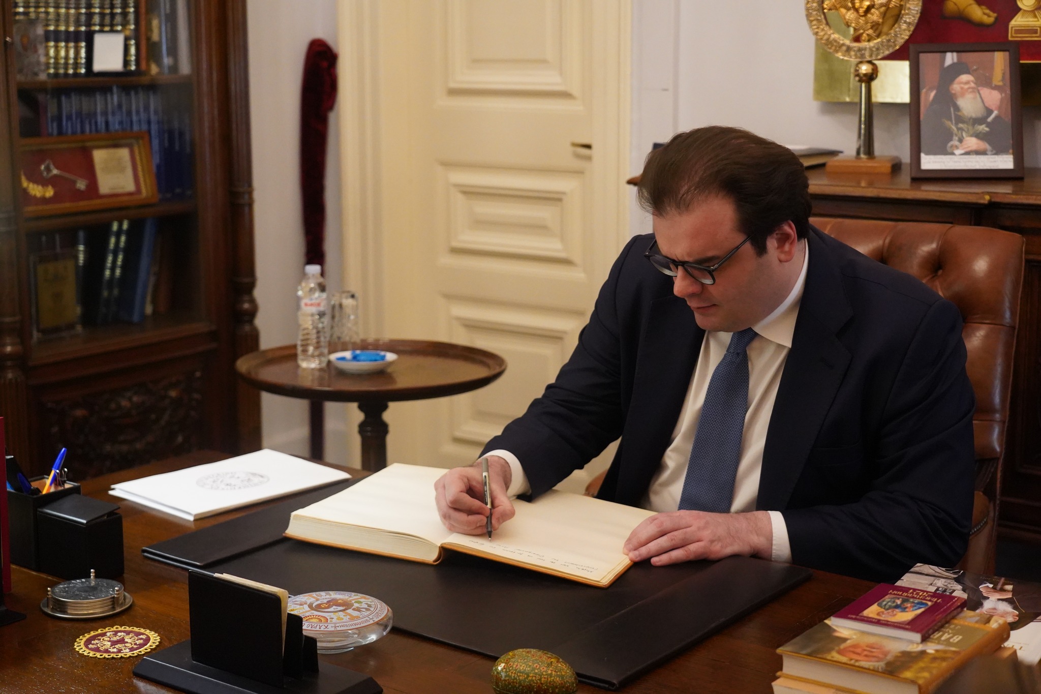 ΒΑΡΘΟΛΟΜΑΙΟΣ – Ο Οικουμενικός Πατριάρχης κ. Βαρθολομαίος, στο πλαίσιο της επισκέψεώς του στην Αθήνα, συναντήθηκε με τον Υπουργό Παιδείας και Θρησκευμάτων της Ελλάδος κ. Κυριάκο Πιερρακάκη, σήμερα, Τετάρτη, 17 Απριλίου 2024, στο Γραφείο Εκπροσωπήσεως του Οικουμενικού Πατριαρχείου.
