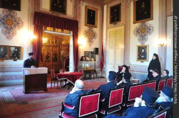 Τας ανωτέρω αληθείας, την πίστιν, την ειρήνην, την ποιμαντικήν, την γενναιότητα και την αγάπην, δια την σημασίαν της περιόδου εκείνης και πάσης περιόδου καλώς ειδότες, μετ  ?διαιτέρας χαράς χαιρετίζομεν την παρούσαν σύναξιν, η οποία αποτελεί ευκαιρίαν κοινωνίας και ανταλλαγής εμπειριών και σκέψεων και αλληλοδιδασκαλίας εκ του παραδείγματος των Πατέρων, της μακράς και αστασιάστου παραδόσεως του Ιερού Κεντρου της Ορθοδοξίας, ώστε να αλληλοωφεληθώμεν εις την συνέχισιν της πορείας μας προς διακονίαν.