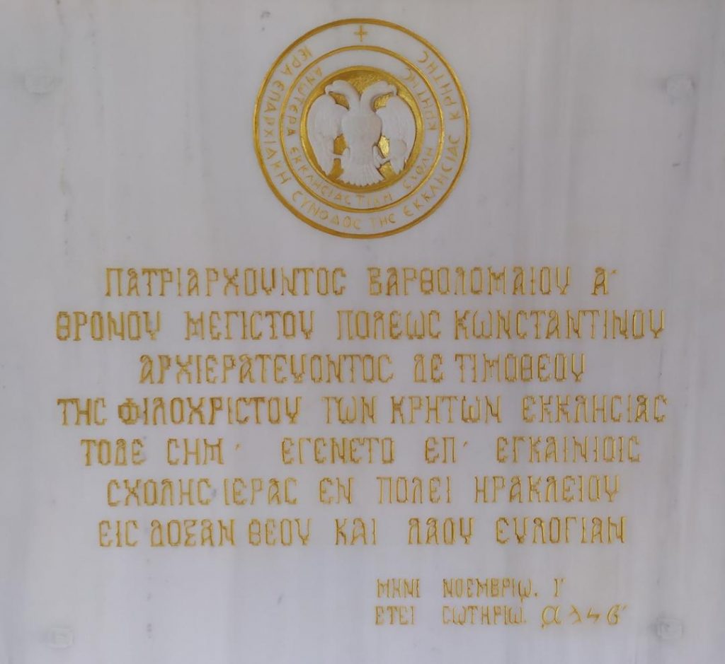 Συμπληρώθηκαν στις 10 Νοεμβρίου 2022 τριάντα Έτη από την ευλογημένη και ιστορική στιγμή κατά την οποία η Αυτού Θειοτάτη Παναγιότητα, ο Παναγιώτατος Οικουμενικός μας Πατριάρχης κ.κ. ΒΑΡΘΟΛΟΜΑΙΟΣ τέλεσε τα Εγκαίνια της Ανωτέρας Εκκλησιαστικής Σχολής Κρήτης (10 Νοεμβρίου 1992).