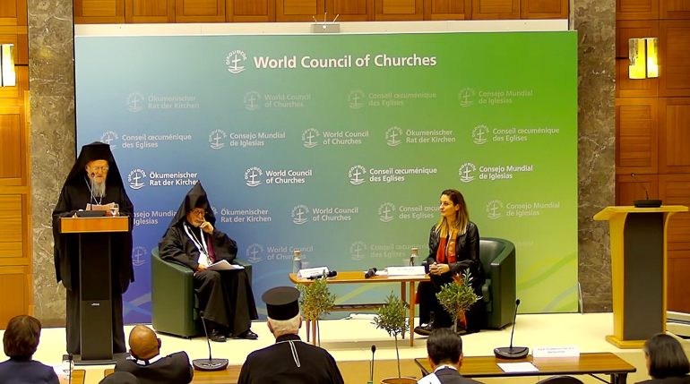 Τον Παναγιώτατο προσφώνησε, εκ μέρους του απουσιάζοντος Γενικού Γραμματέα του ΠΣΕ, ο Σεβ. Αρχιεπίσκοπος Δρ Aykazian Vicken, Αντιπρόεδρος της Κεντρικής Επιτροπής του διεκκλησιαστικού αυτού Οργανισμού, ενώ, στην ίδια συνάντηση, ομίλησε και ο Σεβ. Μητροπολίτης Γέρων Χαλκηδόνος κ. Εμμανουήλ.