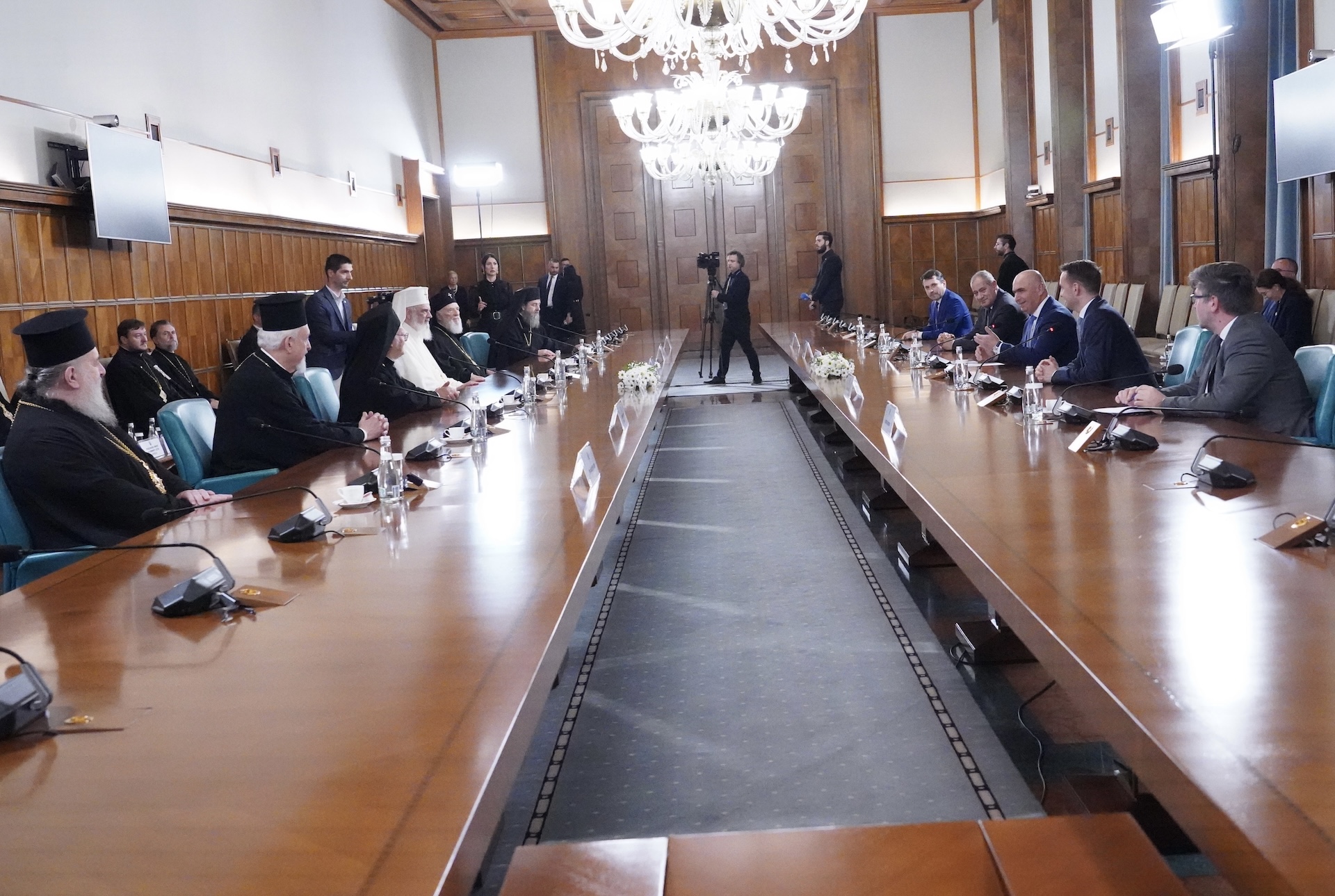 . Παρών στη συνάντηση ήταν και ο Πατριάρχης Ρουμανίας κ. Δανιήλ, ο οποίος συνόδευε τον Προκαθήμενο της Ορθοδοξίας κατά την επίσημη επίσκεψή του στη χώρα.