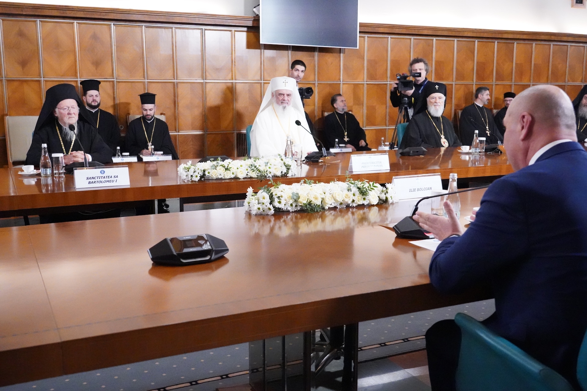 Νωρίτερα το πρωί, στο πλαίσιο πανηγυρικής συνεδρίασης της Ιεραρχίας της Εκκλησίας Ρουμανίας, ο Οικουμενικός Πατριάρχης απηύθυνε εκτενή ομιλία για τον ρόλο της Ορθοδοξίας στη σύγχρονη Ευρώπη. Παρουσία πλήθους ιεραρχών και κληρικών, αλλά και εκπροσώπων του ρουμανικού κράτους, ο Πατριάρχης έκανε ιδιαίτερη μνεία στις ιστορικές σχέσεις των δύο Εκκλησιών, από την εποχή των Φαναριωτών έως σήμερα.