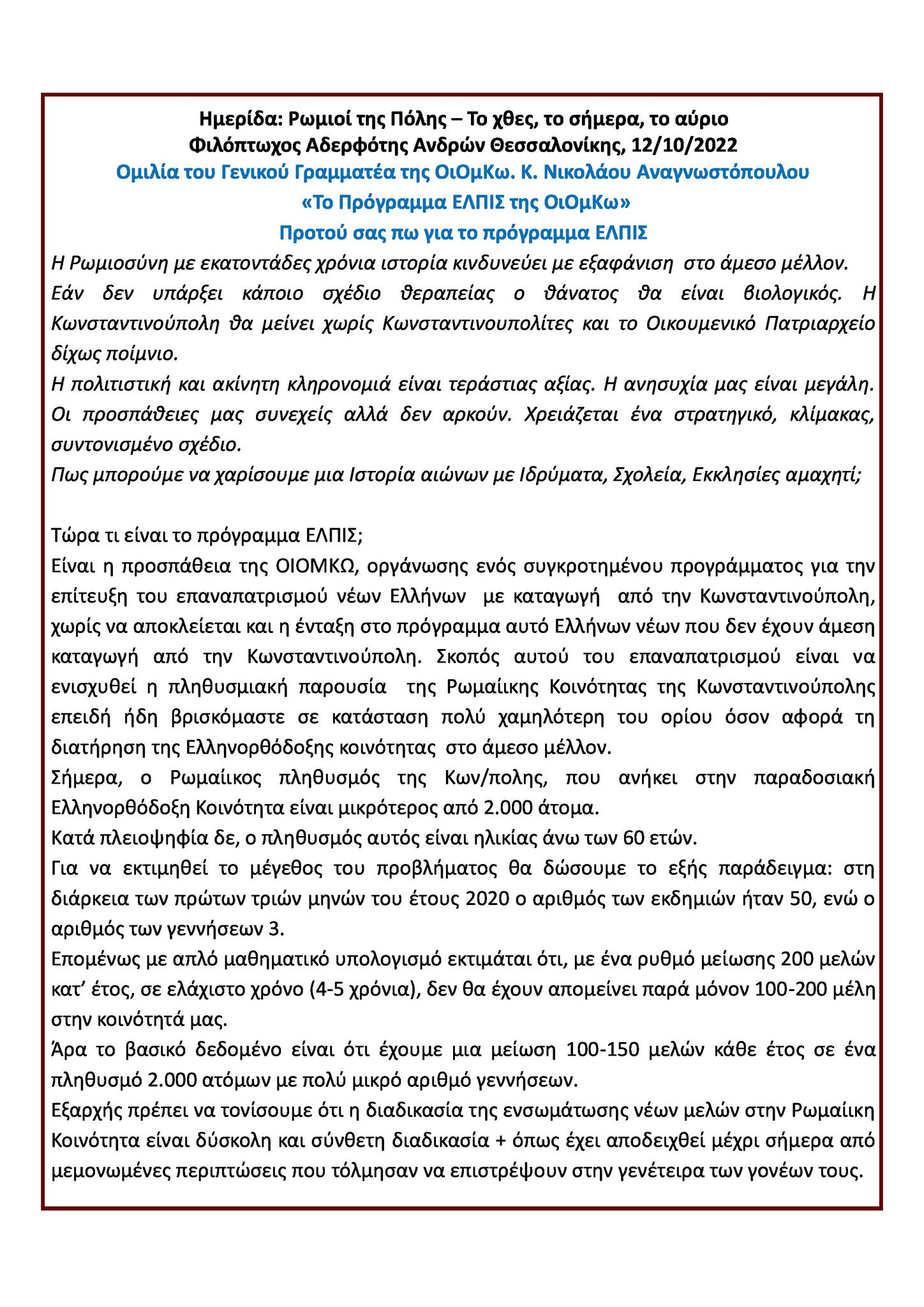 Του Θεοδώρου Καλμούκου/ekirikas.com ΟΜΟΓΕΝΕΙΑ NEWS - Από την 1η έως και την 3η Σεπτεμβρίου 2024 θα γίνει Σύναξη όλων των...