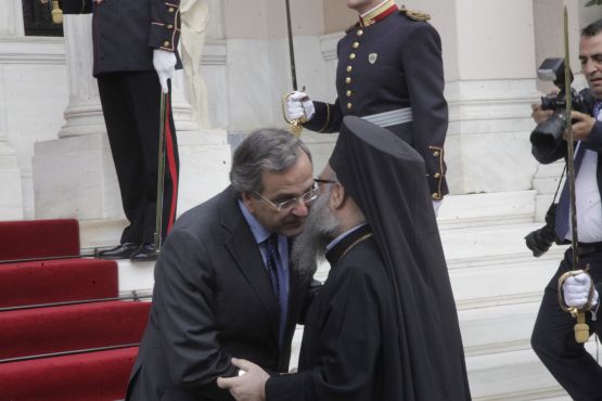 Οι Προκαθήμενοι των δύο Εκκλησιών και η συνοδεία τους επισκέφθηκαν τον κ. Σαμαρά στο Μέγαρο Μαξίμου.
