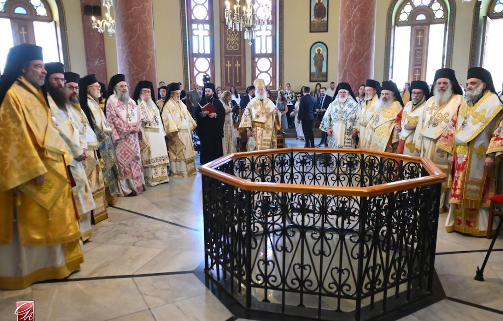 Τον Μακαριώτατο στο Ιερό Θυσιαστήριο πλαισίωσαν συλλειτουργούντες οι Μητροπολίτες Γέρων Καισαρείας κ. Θεοφύλακτος, Διδυμοτείχου, Ορεστιάδος και Σουφλίου κ. Δαμασκηνός, Διοκαισαρείας κ. Βενέδικτος (Εκκλησία Ιεροσολύμων), Μαργκβέτι κ. Μελχισεδέκ (Εκκλησία Γεωργίας), Ερμουπόλεως κ. Νικόλαος, Τρίκκης κ. Χρυσόστομος, Λαγκαδά κ. Πλάτων, Νουβίας κ. Σάββας, Άκκρας κ. Δανιήλ, Ταμιάθεως κ. Γερμανός, και οι Θεοφιλέστατοι Επίσκοποι Νιτρίας κ. Νικόδημος, Τολιάρας κ. Πρόδρομος και Ιππώνος κ. Στέφανος. Από του Ιερού Βήματος παρέστη συμπροσευχόμενος ο Θεοφ. Επίσκοπος Μπουκόμπα κ. Χρυσόστομος.