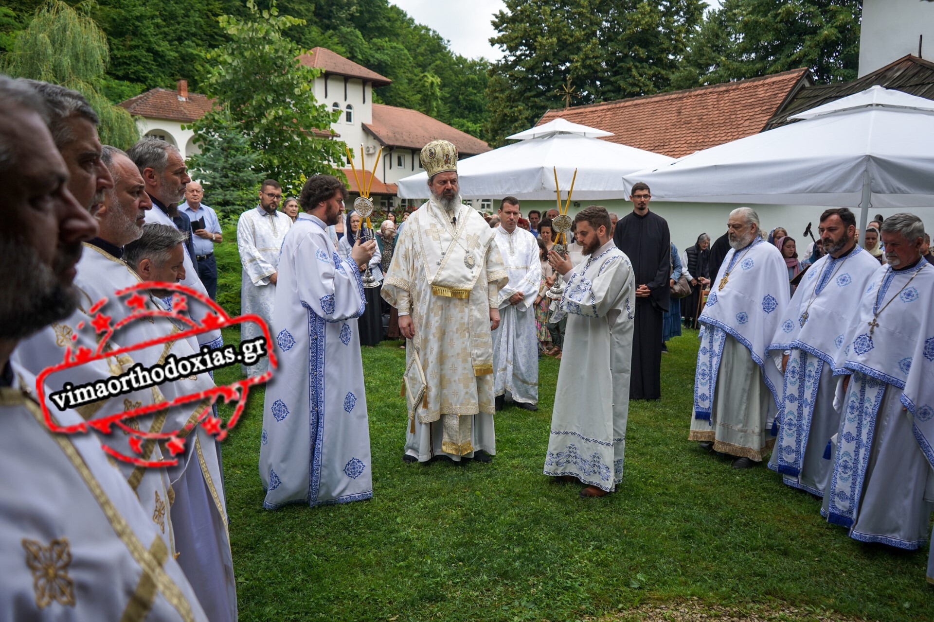Εκ μέρους του οικοδεσπότη, ο πρεσβύτερος ιερομόναχος της μονής, Αρχιμανδρίτης Μιχαήλ, εξέφρασε την ευγνωμοσύνη του στον Επίσκοπο Ησύχιο για την ηγεσία της λειτουργικής συγκέντρωσης, προς τιμήν του ουράνιου προστάτη αυτού του ιερού ναού.