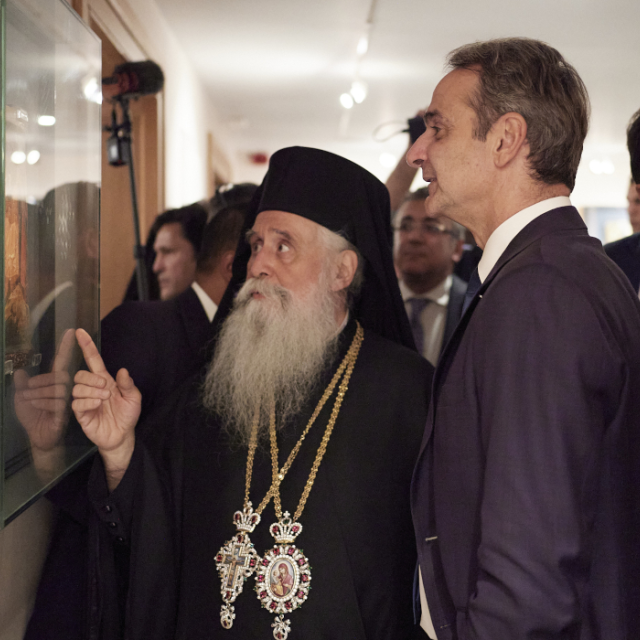 Στην αντιφώνησή του, ο Έλληνας Πρωθυπουργός εξήρε τη συμβολή της Μονής στην ιστορία της Ορθοδοξίας και της ελληνικής ταυτότητας, τονίζοντας πως η Ελλάδα θα σταθεί αρωγός στο έργο του νέου Αρχιεπισκόπου: