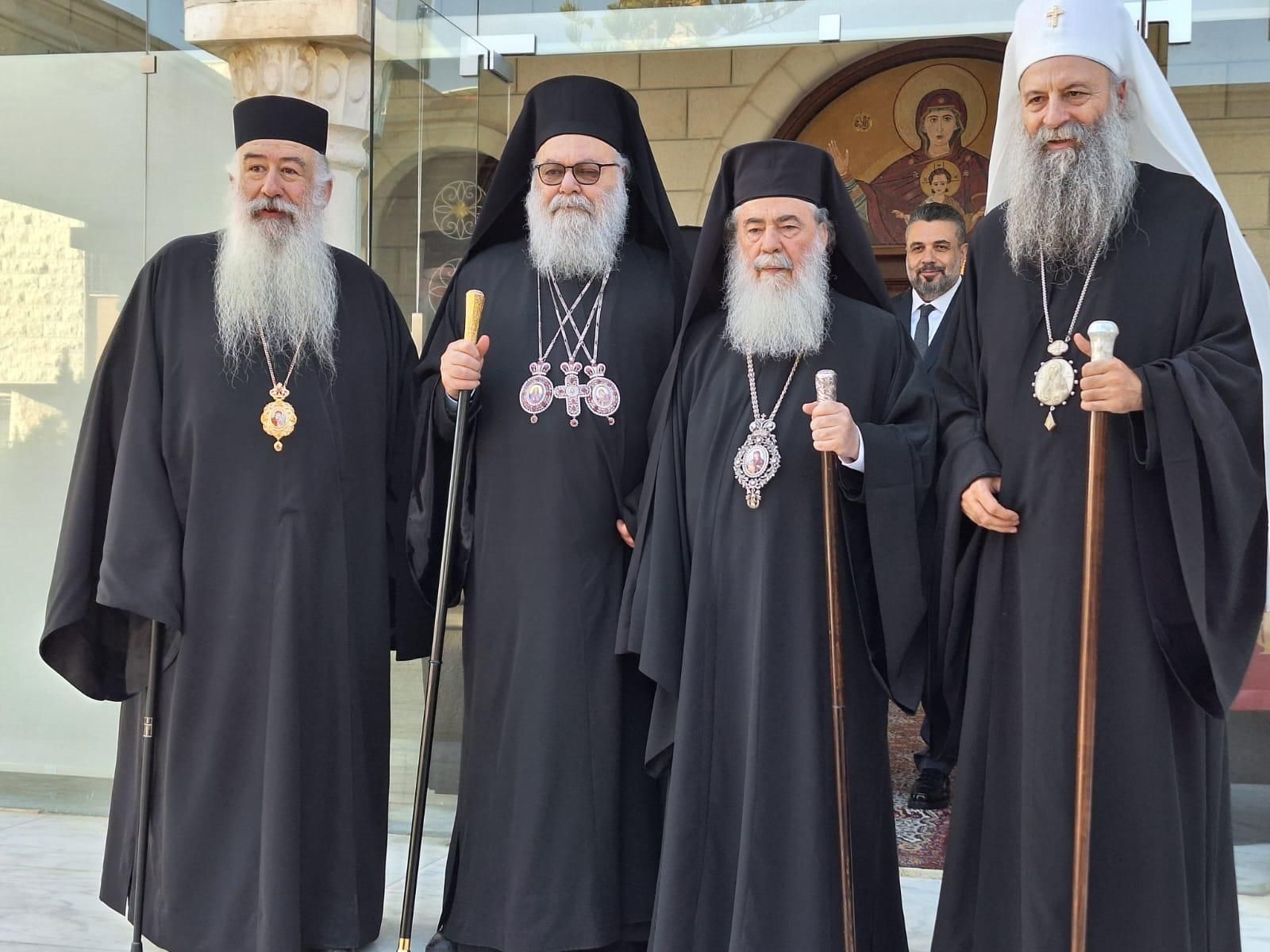ΑΜΜΑΝ: Η συνάντηση των τριών Προκαθημένων στο Αμμάν—γεγονός υψηλού συμβολισμού για τον σύγχρονο εκκλησιαστικό χάρτη—πραγματοποιήθηκε παρουσία του Πατριάρχη Αντιοχείας κ.κ. Ιωάννη, του Πατριάρχη Ιεροσολύμων κ.κ. Θεοφίλου και του Πατριάρχη Σερβίας κ.κ. Πορφυρίου, στη διοικητική έδρα της Αρχιεπισκοπής Κυριακουπόλεως.