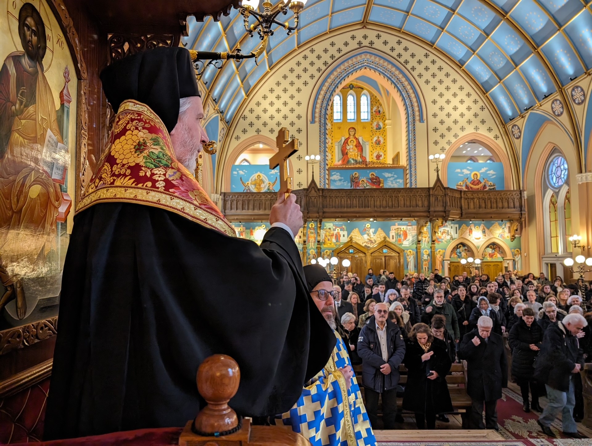 συλλειτούργησε με τον Εφημέριο του Καθεδρικού Ναού, Πανοσιολ. Αρχιμανδρίτη κ. Βαρθολομαίο Ιατρίδη, ο Πανοσιολ. Αρχιμανδρίτης κ. Αντώνιος Elbitar, Βικάριος του Πατριαρχείου Αντιοχείας στην Σουηδία.