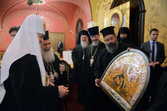 Με τον Μακαριώτατο Πατριάρχη Ιεροσολύμων κ.κ. Θεόφιλο είχε συνάντηση στις 2 Δεκεμβρίου 2017 στην «Κόκκινη» αίθουσα του Ιερού Καθεδρικού Ναού του Σωτήρος Χριστού Μόσχας ο Αγιώτατος Πατριάρχης Μόσχας και Πασών των Ρωσσιών κ.κ. Κύριλλος.