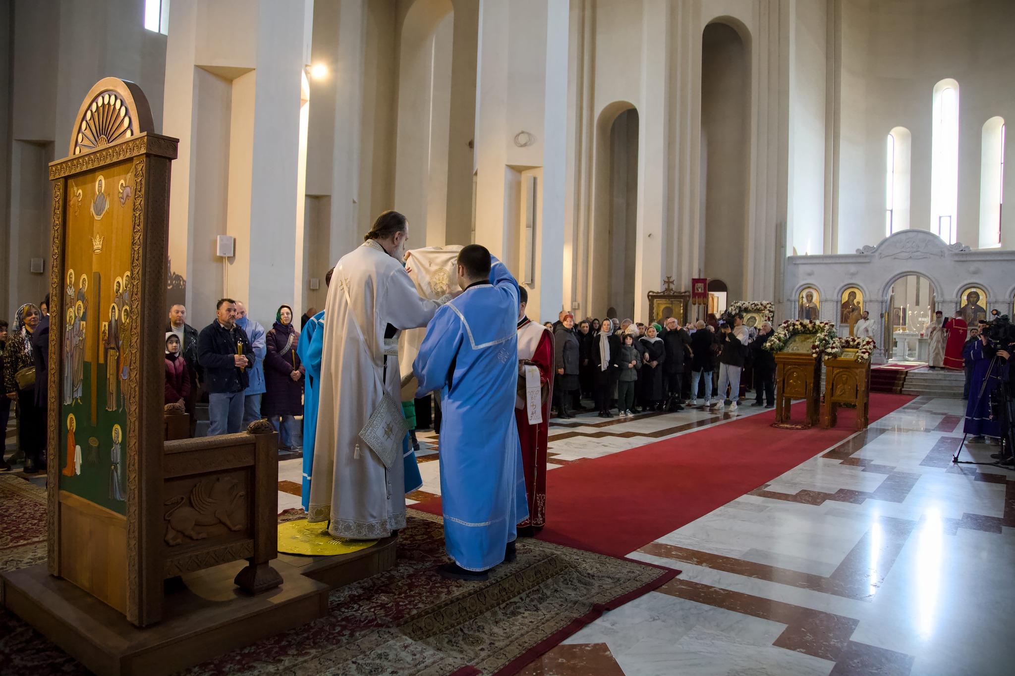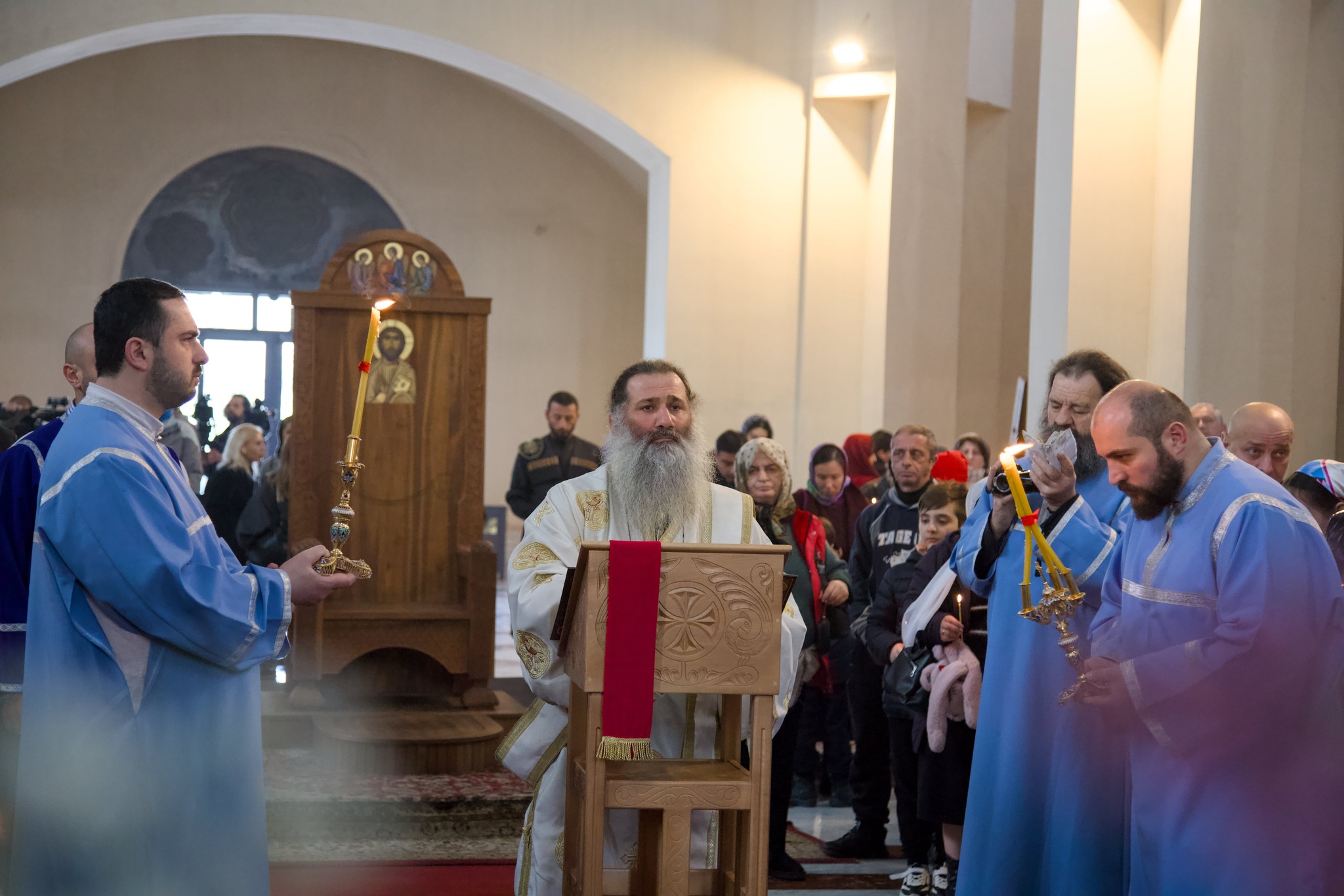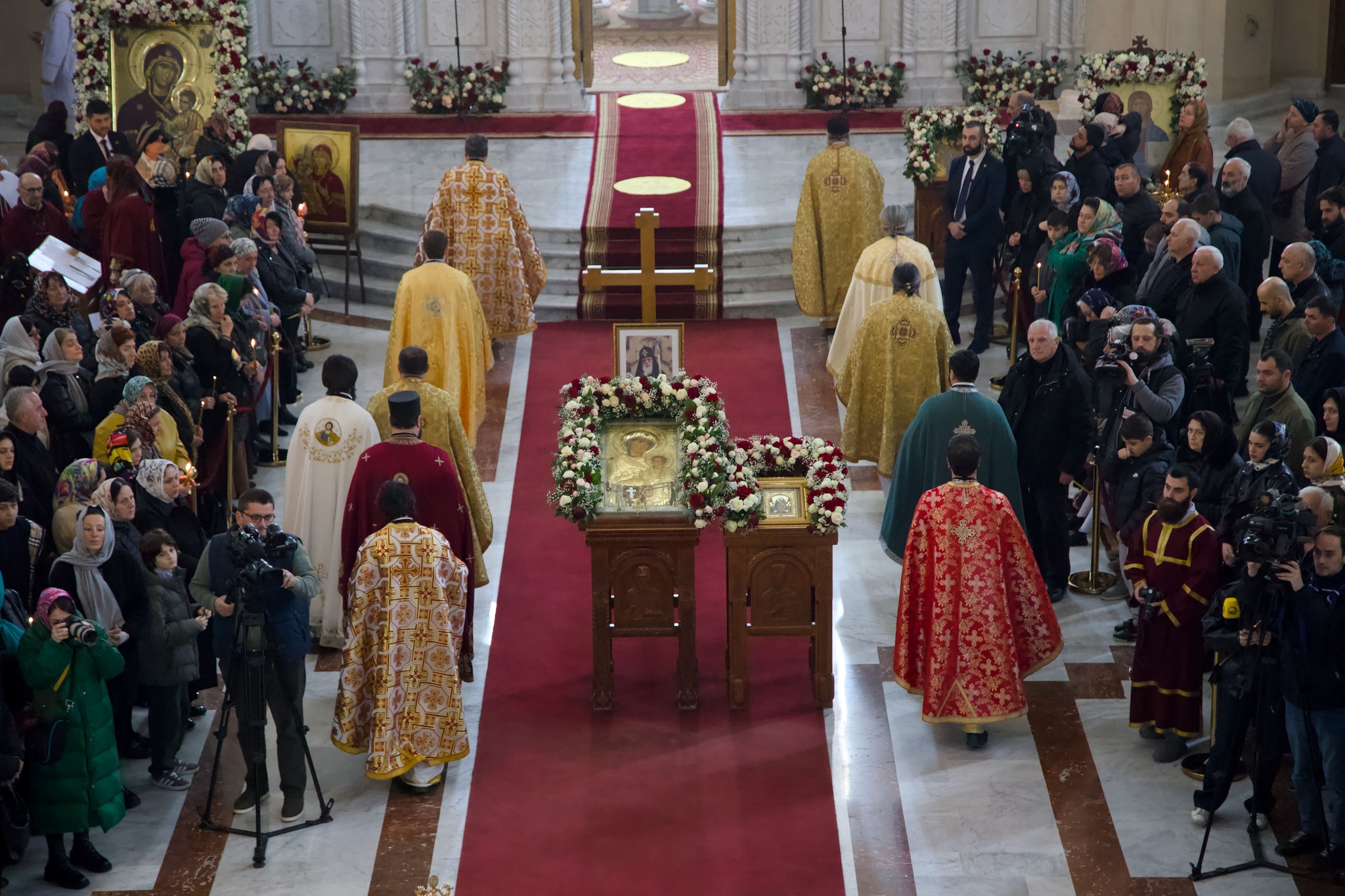 Η πανηγυρική Θεία Λειτουργία τελέστηκε με λαμπρότητα, προεξάρχοντος του Τοποτηρητή του Πατριαρχικού Θρόνου, Μητροπολίτη Σενάκι και Τσχορότσκου κ. Σιό, ο οποίος πλαισιώθηκε από τον Μητροπολίτη Τσιατούρα και Σατσχέρε κ. Δανιήλ και πλήθος κληρικών. Η παρουσία εκατοντάδων πιστών κατέδειξε τη βαθιά σχέση του γεωργιανού λαού με την Ορθόδοξη παράδοση, η οποία παραμένει ζωντανή και δυναμική.