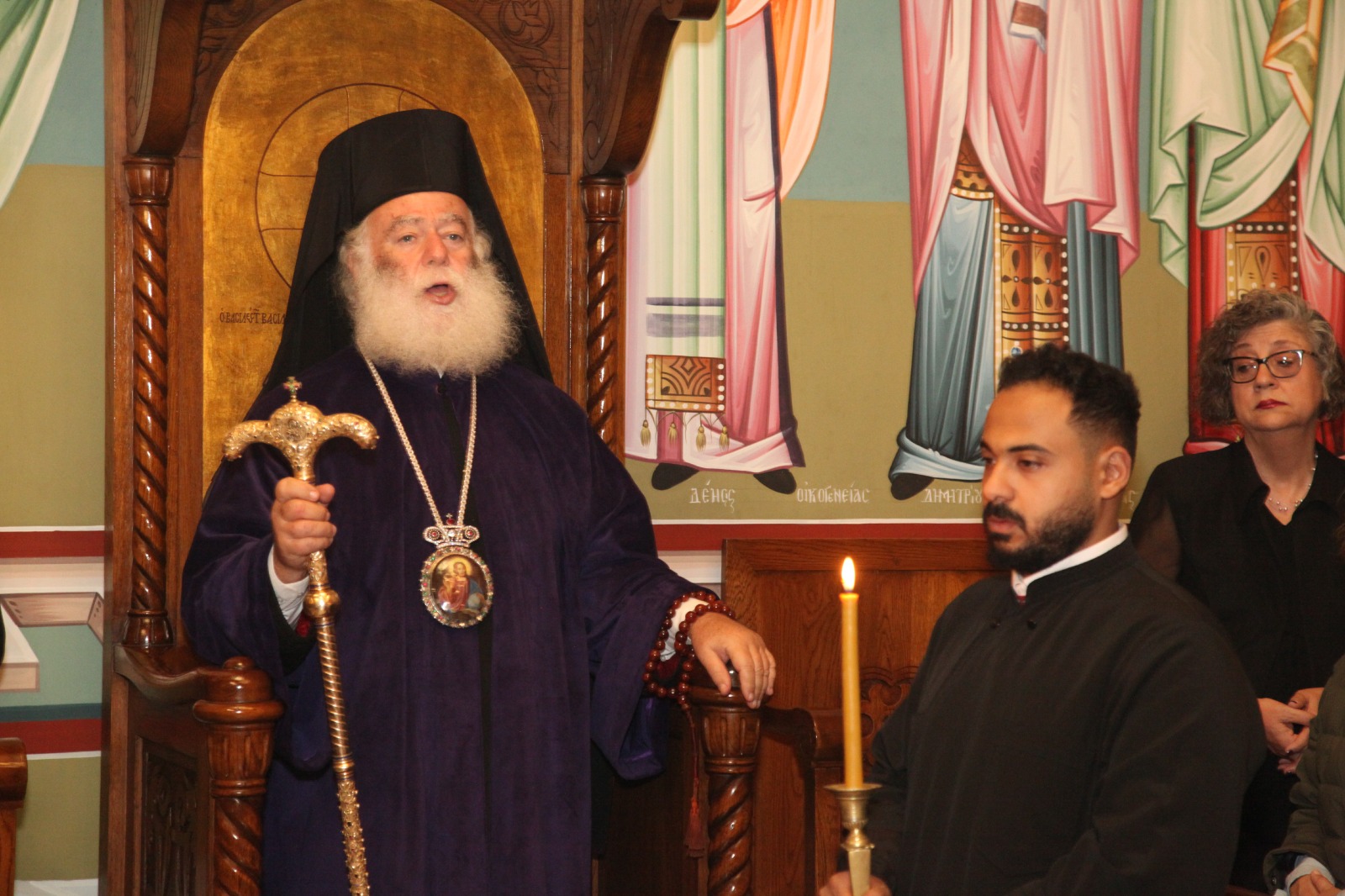 Εκ μέρους του κλήρου και του ποιμνίου, τις εόρτιες ευχές υπέβαλε ο Θεοφιλέστατος Επίσκοπος Μαρεώτιδος κ. Δαμασκηνός, Πατριαρχικός Επίτροπος Αλεξανδρείας, εκφράζοντας την υιϊκή αγάπη, τον απέραντο σεβασμό και την ευγνωμοσύνη του κλήρου και του λαού προς το σεπτό πρόσωπο του Πατριάρχου της Αγάπης.