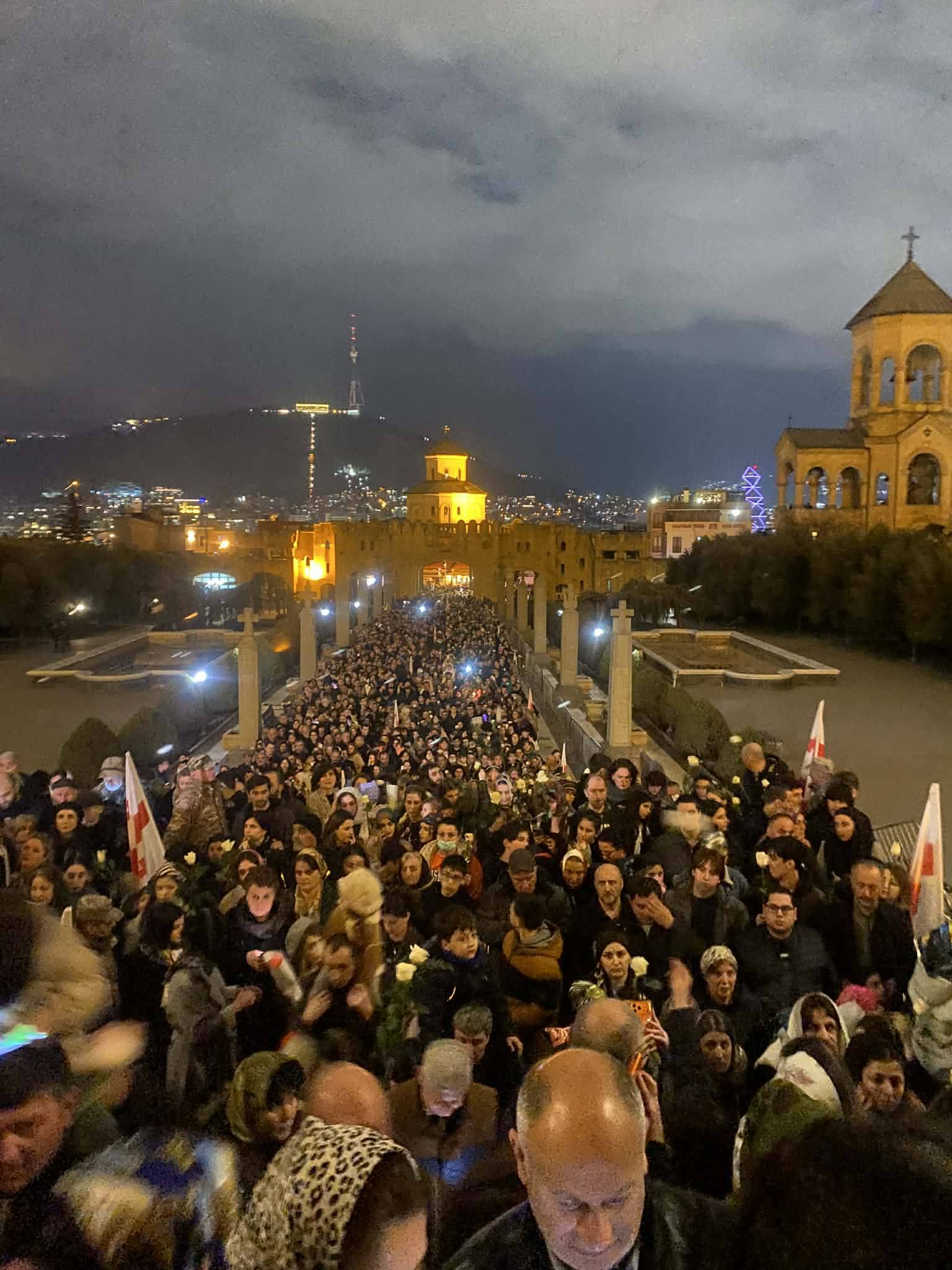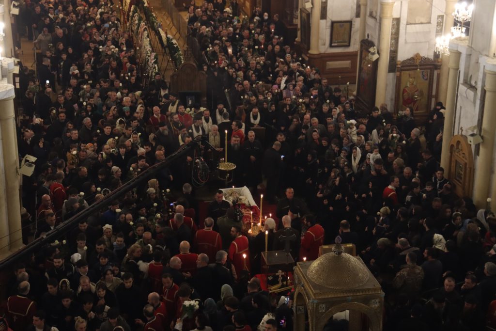 Το βράδυ της Πέμπτης, η Τιφλίδα έγινε σκηνή βαθιάς συγκίνησης. Χιλιάδες βαφτιστήρια του Πατριάρχη συγκεντρώθηκαν στον σταθμό του Μετρό «Αυλαμπάρι» και, κρατώντας λευκά τριαντάφυλλα, σχημάτισαν πομπή προς τον Καθεδρικό Ναό.