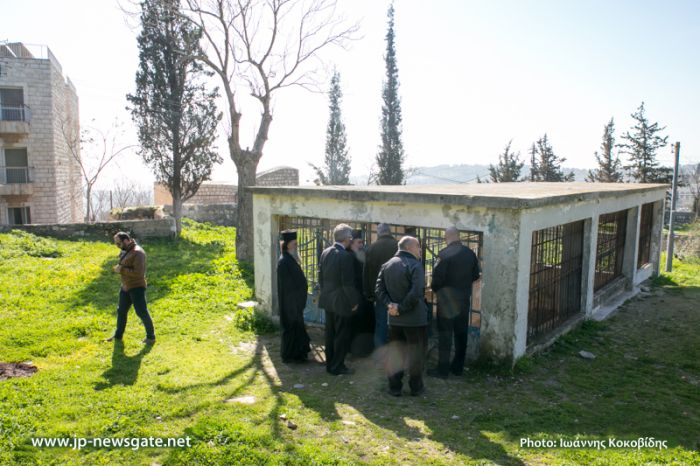 Την πρωΐαν μετά την ακολουθίαν εις τον Ιερόν Μοναστηριακόν Ναόν των Αγίων Κωνσταντίνου και Ελένης μετέβη επί τόπου η Α.Θ.Μ. ο Πατήρ ημών και Πατριάρχης Ιεροσολύμων κ.κ. Θεόφιλος, συνοδευόμενος υπό του Γέροντος Αρχιγραμματέως Αρχιεπισκόπου Κωνσταντίνης κ. Αριστάρχου και του Γραμματέως της Αγίας και Ιεράς Συνόδου Σεβασμιωτάτου Αρχιεπισκόπου Λύδδης κ. Δημητρίου και άλλων Αγιοταφιτών Πατέρων και μετά του Γενικού Προξένου της Ελλάδος εις τα Ιεροσόλυμα κ. Γεωργίου Ζαχαριουδάκη δι’ έλεγχον του γεγονότος. Ενταύθα κατά την επίσκεψιν ταύτην ευρίσκετο και η Ισραηλινή Αστυνομία, η οποία είχε περικλείσει και περιορίσει τον χώρον διά την έρευναν αυτής.