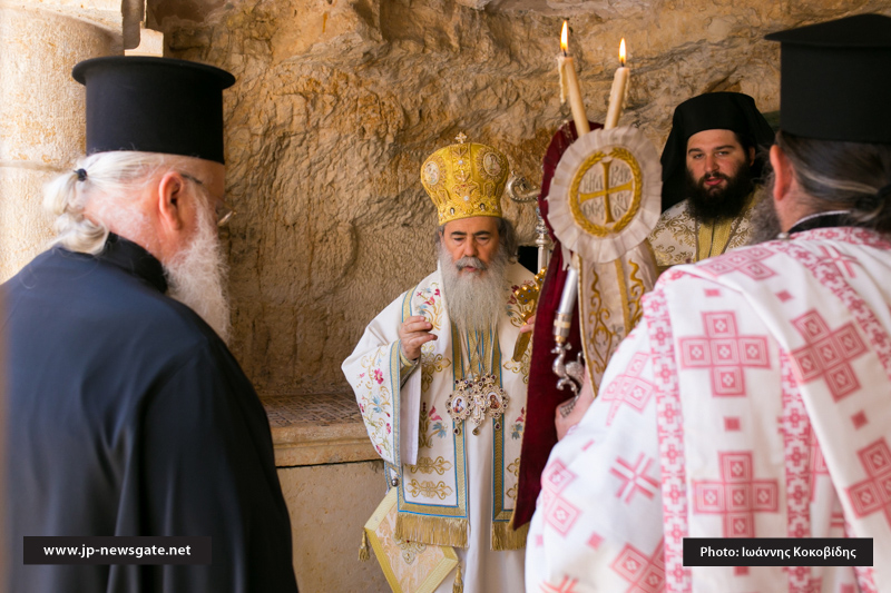Εις την ιστορικήν ταύτην Μονήν προεξήρξε του Όρθρου και της Θ. Λειτουργίας η Α.Θ.Μ. ο Πατήρ ημών και Πατριάρχης Ιεροσολύμων κ.κ. Θεόφιλος, συλλειτουργούντων Αυτώ των Αγιοταφιτών Αρχιερέων Γέροντος Αρχιγραμματέως Σεβασμιωτάτου Αρχιεπισκόπου Κωνσταντίνης κ. Αριστάρχου και του Σεβασμιωτάτου Αρχιεπισκόπου Θαβωρίου κ. Μεθοδίου, Αγιοταφιτών Ιερομονάχων, Ιερωνύμου, Νήφωνος, Δαμιανού, Ιγνατίου και παρεπιδημούντων της Εκκλησίας της Ελλάδος εκ της Ιεράς Μητροπόλεως Πατρών, συνδεομένων μετά της Μονής, της ηγουμένης αυτής μοναχής Παισίας και της μακαριστής Σεραφείμας μοναχής, συμπροσευχομένου του Σεβασμιωτάτου Μητροπολίτου Ναζαρέτ κ. Κυριακού, ψάλλοντος του Πρωτοψάλτου του Πανιέρου Ναού της Αναστάσεως Αρχιμανδρίτου π. Αριστοβούλου και βοηθών αυτού και προσευχομένου εν κατανύξει εκκλησιάσματος εκ μοναχών, μοναζουσών, εντοπίων Ιεροσολυμιτών και προσκυνητών της Μονής και άλλων.