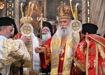 Διαρκούσης της θείας Λειτουργίας ο Μακαριώτατος εκήρυξε τον θείον λόγον εις τους πιστούς ελληνιστί, έχοντα ως έπεται: