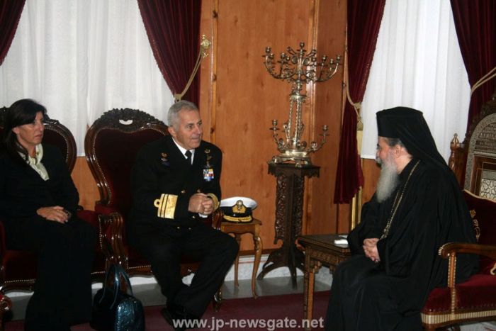 Ο ειρηνευτικός ρόλος του Πατριαρχείου Ιεροσολύμων συζητήθηκε μεταξύ άλλων στη συνάντηση του Πατριάρχη κ.κ.Θεοφίλου με τον Αρχηγό του Ελληνικού Πολεμικού Ναυτικού κ.Ευάγγελου Αποστολάκη στους Αγίους Τόπους.