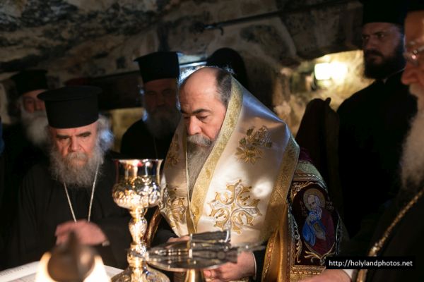 Εις παλαιόν παρεκκλήσιον της Κοινότητος ταύτης επ’ ονόματι του Αγίου Γεωργίου εις την άκρην του Κοιμητηρίου της Κοινότητος, ο Μακαρώτατος εγένετο δεκτός εν θερμή υποδοχή εν συνεχεία δε, ενδυθείς μανδύαν και ευλογήσας, εχοροστάτησεν εις την θ. Λειτουργίαν των Προηγιασμένων, την οποίαν ετέλεσεν ο εν λόγω πατήρ Νικόλαος Μπάσαλ, τη παρουσία του ηγουμένου της Άκκρης Αρχιμανδρίτου π. Φιλοθέου, εις την πνευματικήν ευθύνην του οποίου υπάγεται η εν λόγω Κοινότης και τη παρουσία του ηγουμένου της Ιεράς Μονής Μεταμορφώσεως του Σωτήρος του Όρους Θαβώρ, τη επιστασία και επιχορηγήσει του οποίου και του Πατριαρχείου εγένοντο σημαντικαί συντηρητικαί εργασίαι ανακαινίσεως του παρεκκλησίου και των παρακειμένων αυτού αιθουσών ενοριακής χρήσεως, Κατηχητικών Σχολείων και άλλων.