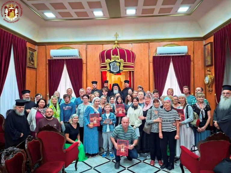Απαντών ο Μακαριώτατος είπεν ότι, «δεχόμεθα μετ’ ευχαριστιών την επίσκεψιν των Σεβασμιωτάτων Αρχιεπισκόπων Ιεραπόλεως και Καττάρων και τον νεοχειροτονηθέντα Ιερέα π. Αλέξανδρον και ότι η επίσκεψις αυτών αποτελεί απτόν σημείον ότι το Πατριαρχείον ενδιαφέρεται διά την Ρωσικήν Κοινότητα, εργαζόμενον διά την ίδρυσιν Ναού διά τους Ρωσοφώνους πιστούς, προερχομένους εκ διαφόρων χωρών, Μολδαυίας, Ρωσίας, Ουκρανίας. Διατηρούντες την ελπίδα εφθάσαμεν εις την σημερινήν κατάστασιν, έχοντες Εκκλησίαν και ενορίαν εις την Καπερναούμ. Περί των προκυψάντων προβλημάτων επεμελήθη ο Σεβασμιώτατος Αρχιεπίσκοπος Καττάρων κ. Αριστόβουλος. Διά τον Ναόν εκεί αναζητούμεν χορηγούς. Η Εκκλησία Ιεροσολύμων είναι η μήτηρ των Εκκλησιών. Εν Χριστώ «ουκ έστι Ιουδαίος ουδέ Έλλην, ουκ έστιν άρσεν και θήλυ και ενώνει ημάς ο εσταυρωμένος Χριστός. Ευχαριστούμεν τον Θεόν και τον Σεβασμιώτατον Αριστόβουλον και τον π. Αλέξανδρον και μας χαροποιεί το γεγονός ότι είσθε και λειτουργείτε ως μία οικογένεια. Διά την ίδρυσιν του Ναού υμών συνεργαζόμεθα μετά των αρμοδίων Τοπικών Αρχών και πρεσβεύομεν τας αξίας της Αγίας Γραφής και της Παλαιάς Διαθήκης.