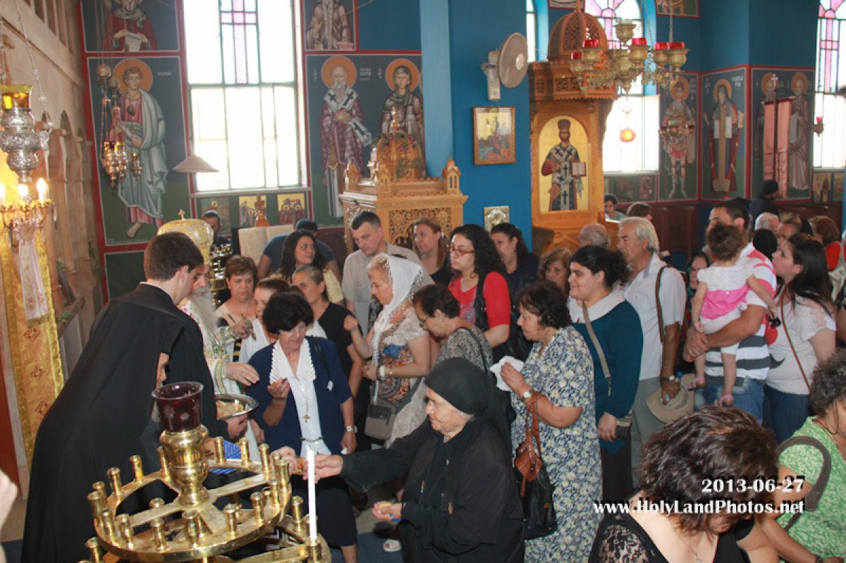 Εις ταύτην την Μονήν ήλθεν ο Μακαριώτατος Πατήρ ημών και Πατριάρχης Ιεροσολύμων κ.κ. Θεόφιλος την πρωίαν της ως άνω ημέρας, και προεξήρξε της θ. Λειτουργίας, συλλειτουργούντων Αυτώ του Γέροντος Αρχιγραμματέως Σεβασμιωτάτου Αρχιεπισκόπου Κωνσταντίνης κ. Αριστάρχου και του Πατριαρχικού εν Βηθλεέμ Επιτρόπου Αρχιεπισκόπου Ιορδάνου κ. Θεοφυλάκτου, του εκ της Αρχιεπισκοπής της Εκκλησίας της Κύπρου Αρχιμανδρίτου π. Ιερωνύμου, του ηγουμένου της Μονής Αββά Γερασίμου του Ιορδανίτου Αρχιμανδρίτου π. Χρυσοστόμου, του ηγουμένου της Ιεράς Μονής Χοζεβά Αρχιμανδρίτου π. Κωνσταντίνου του Αρχιδιακόνου π. Αθανασίου και του διακόνου π. Μακαρίου και άλλων Αγιοταφιτών Πατέρων και τη κατανυκτική συμμετοχή των μελών της Ελληνορθοδόξου Αραβοφώνου Κοινότητος της Ιεριχούς και προσκυνητών εξ Ιεροσολύμων και άλλων πόλεων.