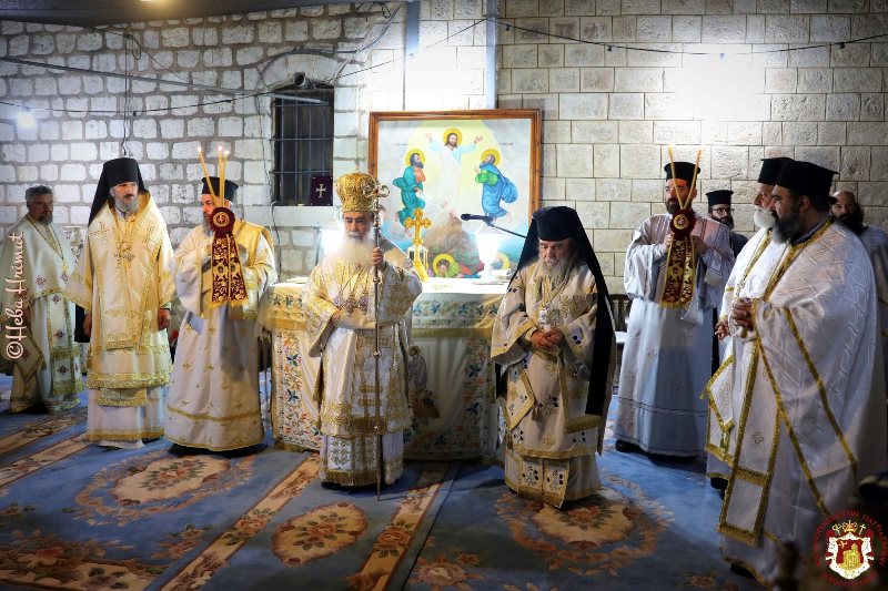 Ωσαύτως ετελέσθη πρωινή θεία Λειτουργία υπό του Σεβασμιωτάτου Μητροπολίτου Ναζαρέτ κ. Κυριακού εις τον ιερόν Ναόν τούτον, αγιογραφηθέντα εξ ολοκλήρου υπό του ρέκτου ηγουμένου Αρχιμανδρίτου π. Ιλαρίωνος, την δε μεσημβρίαν παρετέθη εόρτιος τράπεζα.