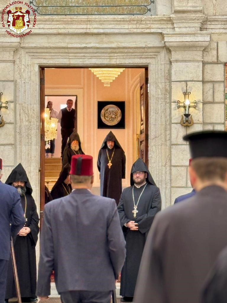 Ο Μακαριώτατος, συνοδευόμενος από την Αγιοταφιτική Αδελφότητα, επισκέφθηκε το Αρμενικό Πατριαρχείο, όπου έγινε δεκτός από τον Πατριάρχη κ. Νουρχάν Μανουκιάν. Οι δύο πλευρές αντάλλαξαν πασχάλιες ευχές, ενώ κατά τις προσφωνήσεις υπογράμμισαν τη σημασία της διατήρησης της ενότητας.