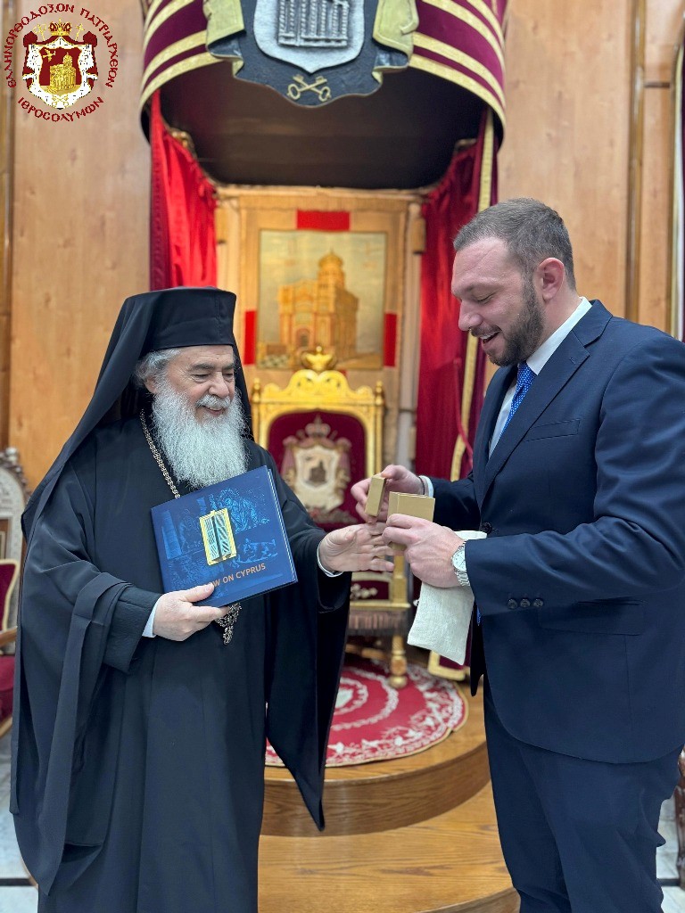 Ακολούθως, ο Πατριάρχης δέχθηκε τον κ. Μάριο Σταύρου, Πρέσβη της Κυπριακής Δημοκρατίας στη Ραμάλλα. Κατά τη συνάντηση, ο Πρέσβης εξέφρασε τη βούληση της Κυπριακής Δημοκρατίας να συμβάλει οικονομικά στη στήριξη του εκπαιδευτικού έργου του Πατριαρχείου Ιεροσολύμων. Ο Πατριάρχης παρουσίασε αναλυτικά τις σχετικές δράσεις και ευχαρίστησε θερμά για το έμπρακτο ενδιαφέρον και τη στήριξη.