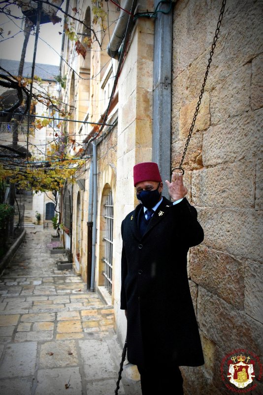 Τής Λειτουργίας ταύτης καί τής πανηγύρεως εν «μικρά παρρησία» προεξήρξεν η Α.Θ.Μ. ο Πατήρ ημών καί Πατριάρχης Ιεροσολύμων κ.κ. Θεόφιλος, συλλειτουργούντων Αυτώ τών Σεβασμιωτάτων Αρχιερέων Μητροπολίτου Καπιτωλιάδος κ. Ησυχίου τών Σεβασμιωτάτων Αρχιεπισκόπων Γεράσων κ. Θεοφάνους, Κωνσταντίνης κ. Αριστάρχου, Σεβαστείας κ. Θεοδοσίου τού Σεβασμιωτάτου Μητροπολίτου Ελενουπόλεως κ. Ιωακείμ Αγιοταφιτών Ιερομονάχων καί διακόνων ψαλλόντων τών Ιερομονάχου π. Συμεών καί Βασιλείου Γκοτσοπούλου βοηθούντος τού Σεβασμιωτάτου Αρχιεπισκόπου Μαδάβων κ. Αριστοβούλου, εν συμμετοχή μοναχών, μοναζουσών, καί λαϊκών Ιεροσολυμιτών, ουχί δέ εισέτι προσκυνητών, παρουσία τού Γενικού Προξένου τής Ελλάδος εις τά Ιεροσόλυμα κ. Ευαγγέλου Βλιώρα.
