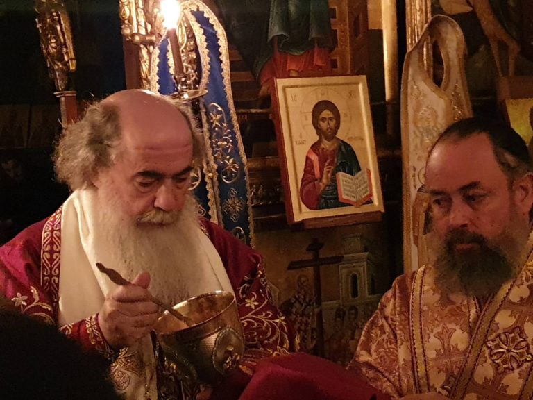 Εις τό Κοινωνικόν τής θείας Λειτουργίας εκήρυξε τόν θείον Λόγον η Α.Θ.Μ. διά τής κάτωθι προσφωνήσεως ελληνιστί: