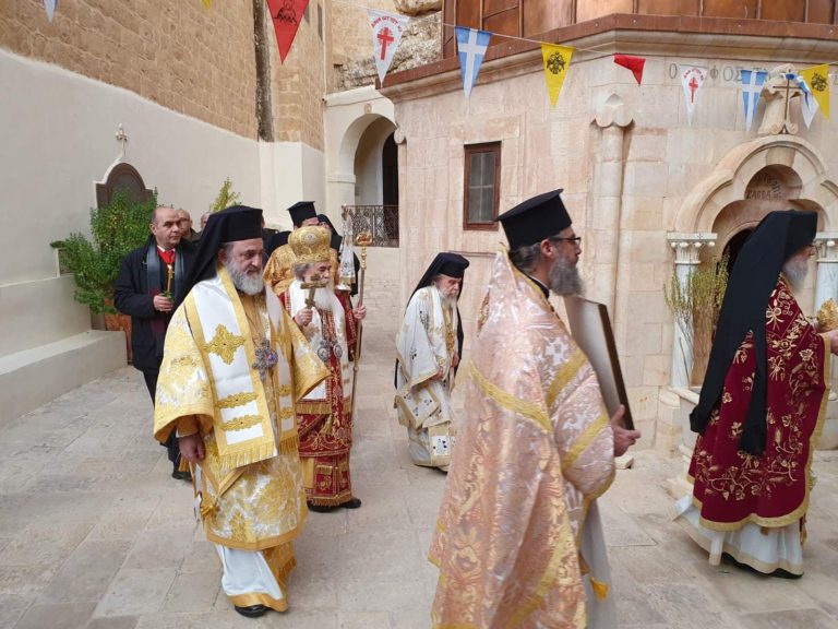 Ευχαριστών τόν Θεόν ο Μακαριώτατος διά τήν πνευματικήν πανδαισίαν τής πανηγύρεως, ανεχώρησε κατευοδούμενος υπό τών Αγιοσαββιτών Πατέρων καί διερχόμενος κατά τό έθος διά τής Ιεράς Μονής τού Αββά Θεοδοσίου τού Κοινοβιάρχου.
