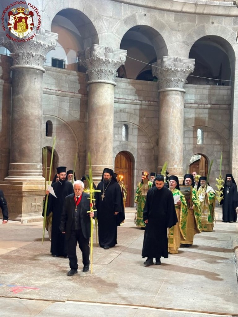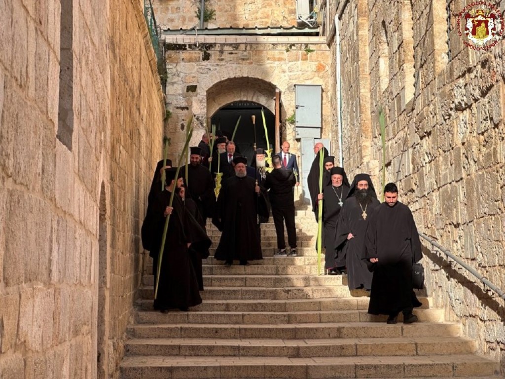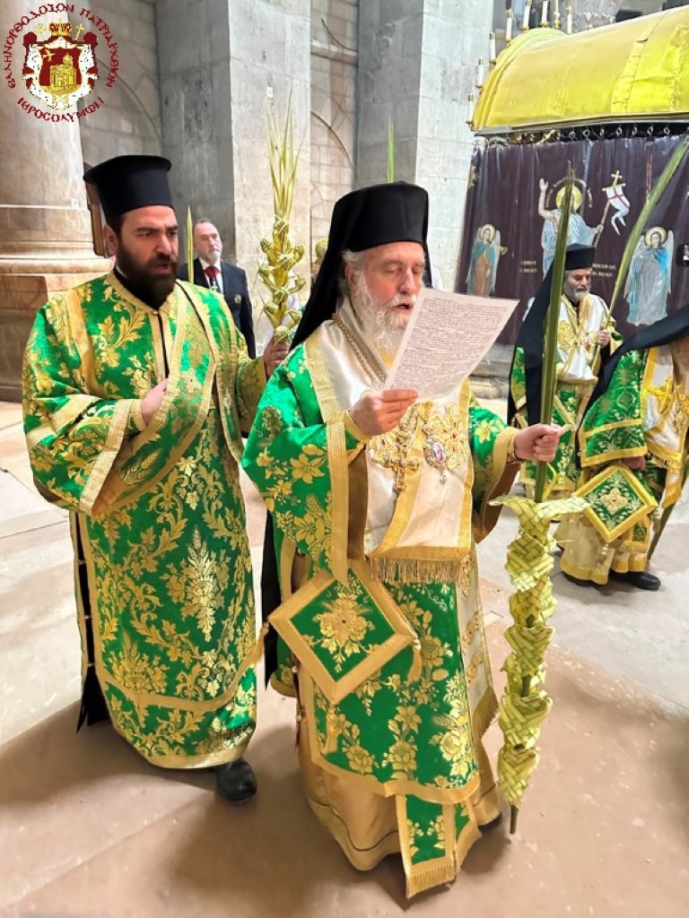 Παρά τα αυξημένα μέτρα ασφαλείας, το Πατριαρχείο Ιεροσολύμων τέλεσε με κάθε επισημότητα την εορτή της θριαμβευτικής εισόδου του Χριστού στα Ιεροσόλυμα. Η Θεία Λειτουργία τελέστηκε στο Καθολικό του Πανιέρου Ναού της Αναστάσεως, προεξάρχοντος του Μακαριωτάτου Πατριάρχου Ιεροσολύμων κ.κ. Θεοφίλου.