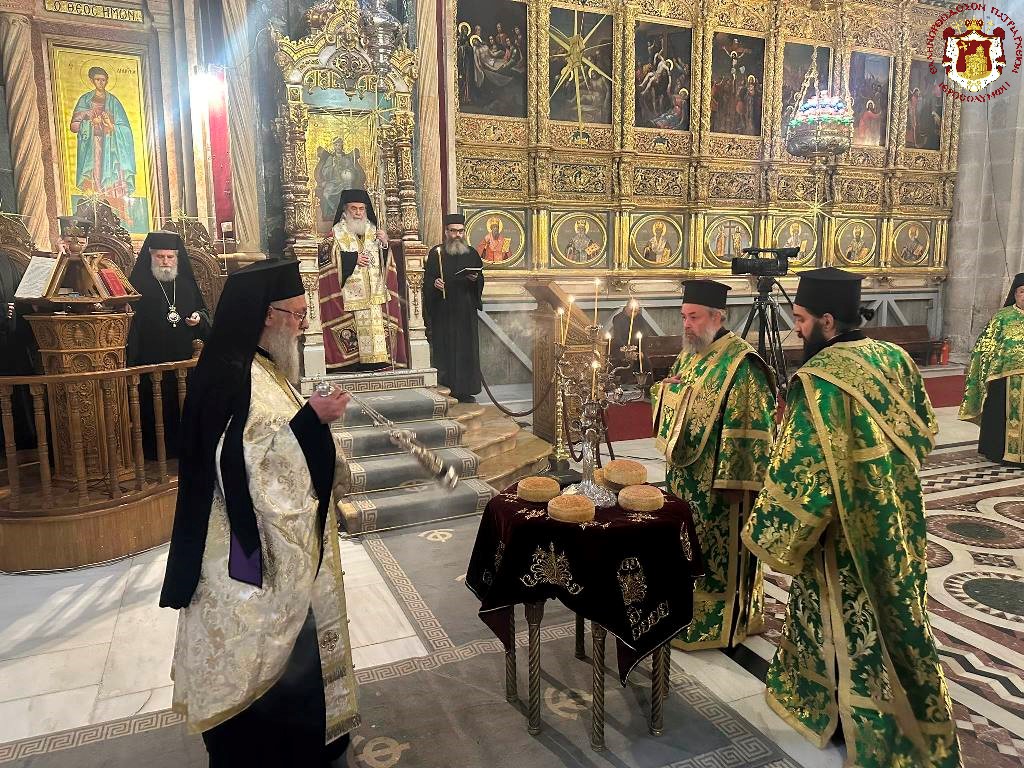 Συλλειτούργησαν Ιεράρχες του Πατριαρχείου, μεταξύ των οποίων ο Μητροπολίτης Καπιτωλιάδος κ. Ησύχιος και Αρχιερείς της Αγιοταφιτικής Αδελφότητας, ενώ η παρουσία των πιστών ήταν περιορισμένη, σύμφωνα με τις οδηγίες των αρχών λόγω της εμπόλεμης κατάστασης.