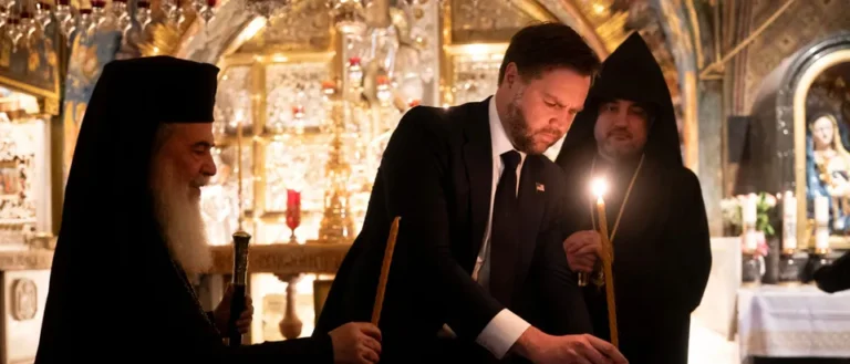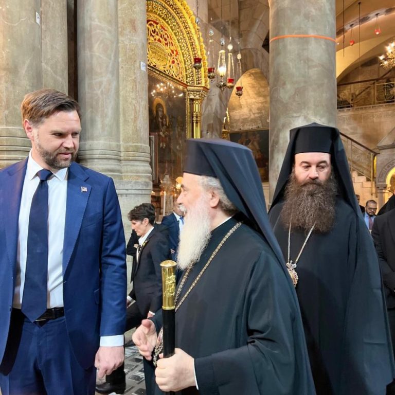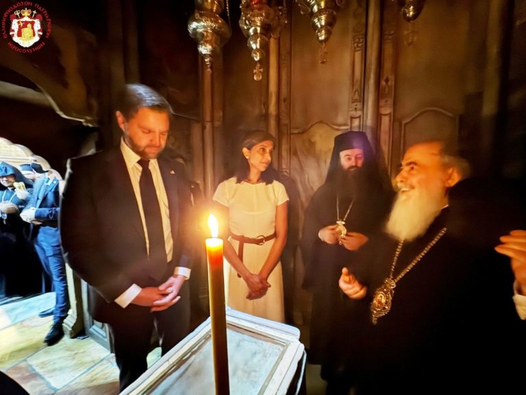 ΙΕΡΟΣΟΛΥΜΑ: Σε μία ιστορική και ιδιαίτερα συμβολική στιγμή για την Ορθόδοξη Εκκλησία, ο Αντιπρόεδρος των Ηνωμένων Πολιτειών Τζέι Ντι Βανς επισκέφθηκε σήμερα, Πέμπτη 23 Οκτωβρίου 2025, τον Πανίερο Ναό της Αναστάσεως στα Ιεροσόλυμα.