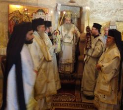 Μετά τήν θ. Λειτουργίαν ο Αρχιμανδρίτης π. Γαλακτίων καί τά μέλη τής ενορίας ταύτης εδεξιώθησαν φιλοφρόνως τόν Μακαριώτατον καί τήν Συνοδείαν  Αυτού.