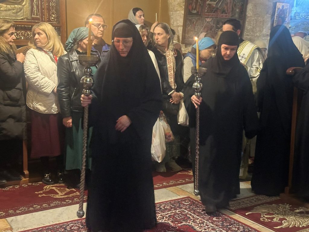 Μετά το πέρας της Θείας Λειτουργίας, η πατριαρχική και αρχιερατική συνοδεία έγινε δεκτή στο ηγουμενείο από την οσιολογιωτάτη καθηγουμένη μοναχή Σεραφείμα, η οποία επιμελείται με ζήλο τα της Μονής και διατηρεί το αρτοποιείο για την προετοιμασία του άρτου της Ευχαριστίας. Η διακονία αυτή αποτελεί ζωντανή μαρτυρία της μοναστικής προσφοράς στους Αγίους Τόπους.