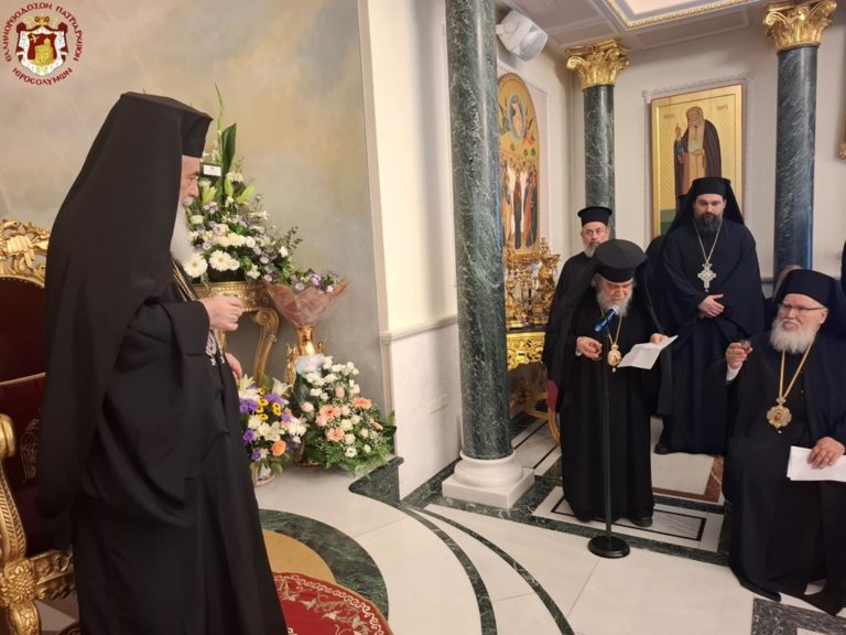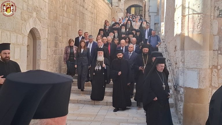 ΙΕΡΟΣΟΛΥΜΑ: Ελληνική παρουσία με βαρύνουσα σημασία-Σαφές μήνυμα στήριξης προς το έργο του Πατριάρχη Ιεροσολύμων κ.κ. Θεοφίλου Γ΄ έστειλε η Ελλάδα, μέσα από την επίσημη παρουσία της Υπουργού Παιδείας Σοφίας Ζαχαράκη, στο πλαίσιο της 20ής επετείου της ενθρόνισής του.