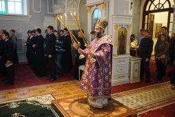 Το Σάββατο, σύμφωνα με το Τυπικό του μοναστηριού της Αναστάσεως Novodevichki, τέλεσε την ακολουθία του Ακαθίστου Ύμνου, διαβάζοντας τις τέσσερις Στάσεις σε τέσσερις διαφορετικές εικόνες της Παναγίας.